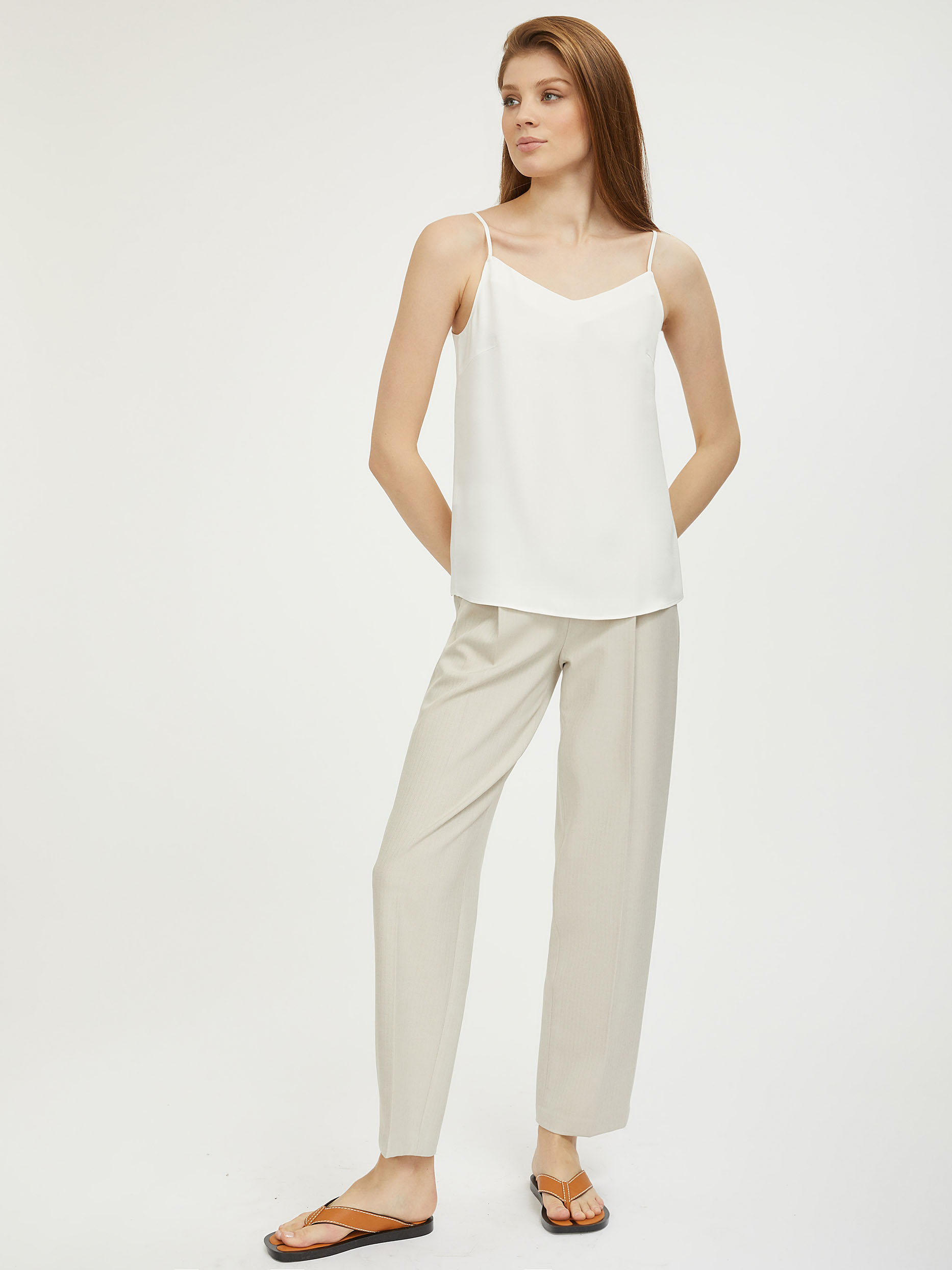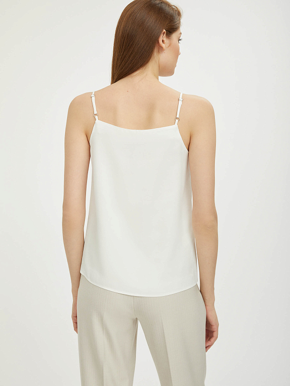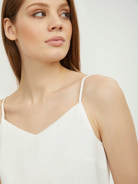 Однотонный атласный топ на регулируемых бретелях. Прямой крой, V-образный вырез.