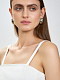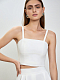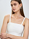 Кроп-топ впишется в вечерние и повседневные образы. Модель из плотного текстиля продублирована косточками по бокам для безупречной посадки. Архитектура изделия продумана так, что съемные бретели трансформируют укороченный топ в бандо, а потайная застежка расположена снизу.