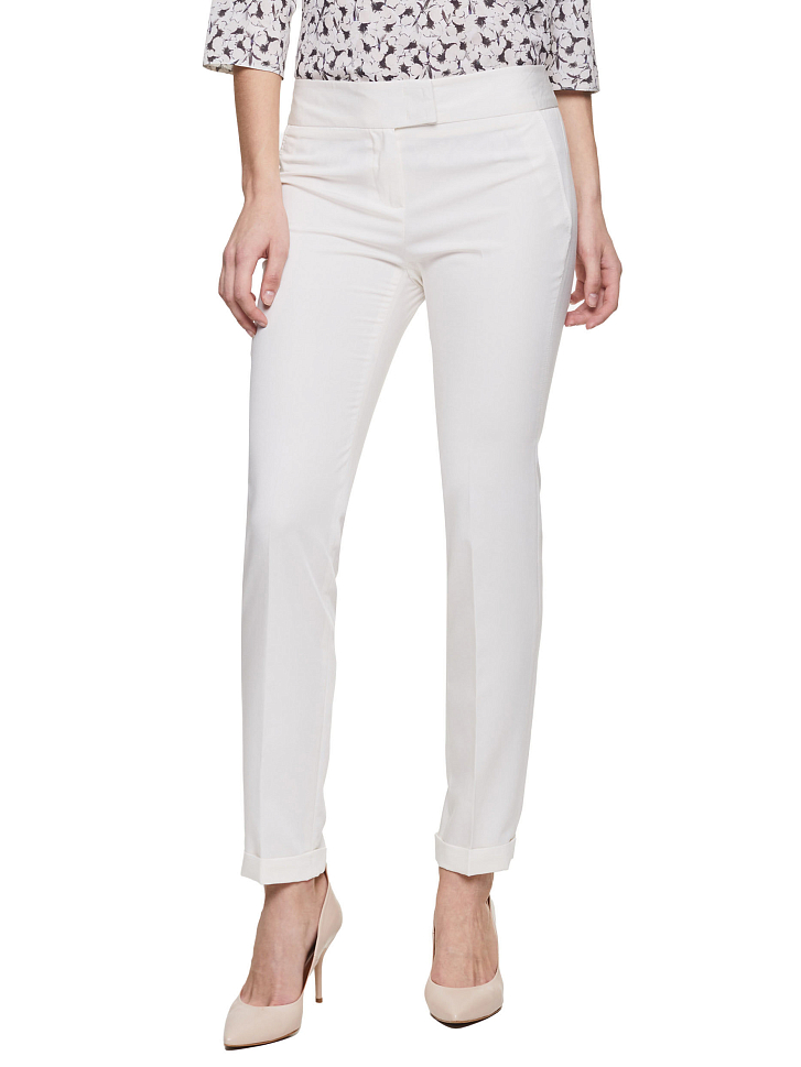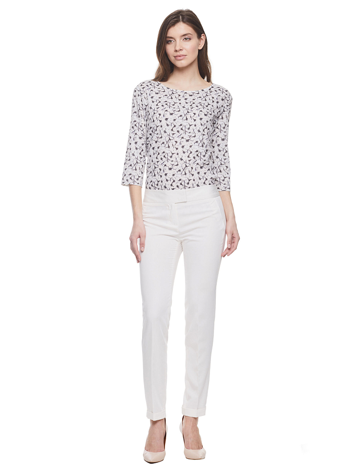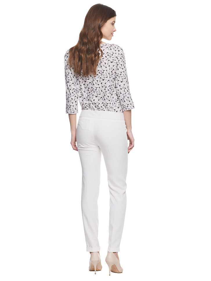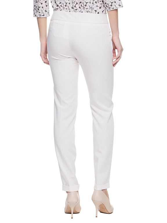 Укороченные брюки прямого кроя. Средняя посадка, стрелки, отвороты по нижнему краю.