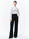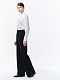 Расклешенные брюки полной длины идеально подойдут для офисного дресс-кода. Гладкая костюмная ткань средней плотности драпируется крупными складками. Для создания строгого и элегантного образа комбинируйте брюки со стрелками с парным жакетом из аналогичной ткани.