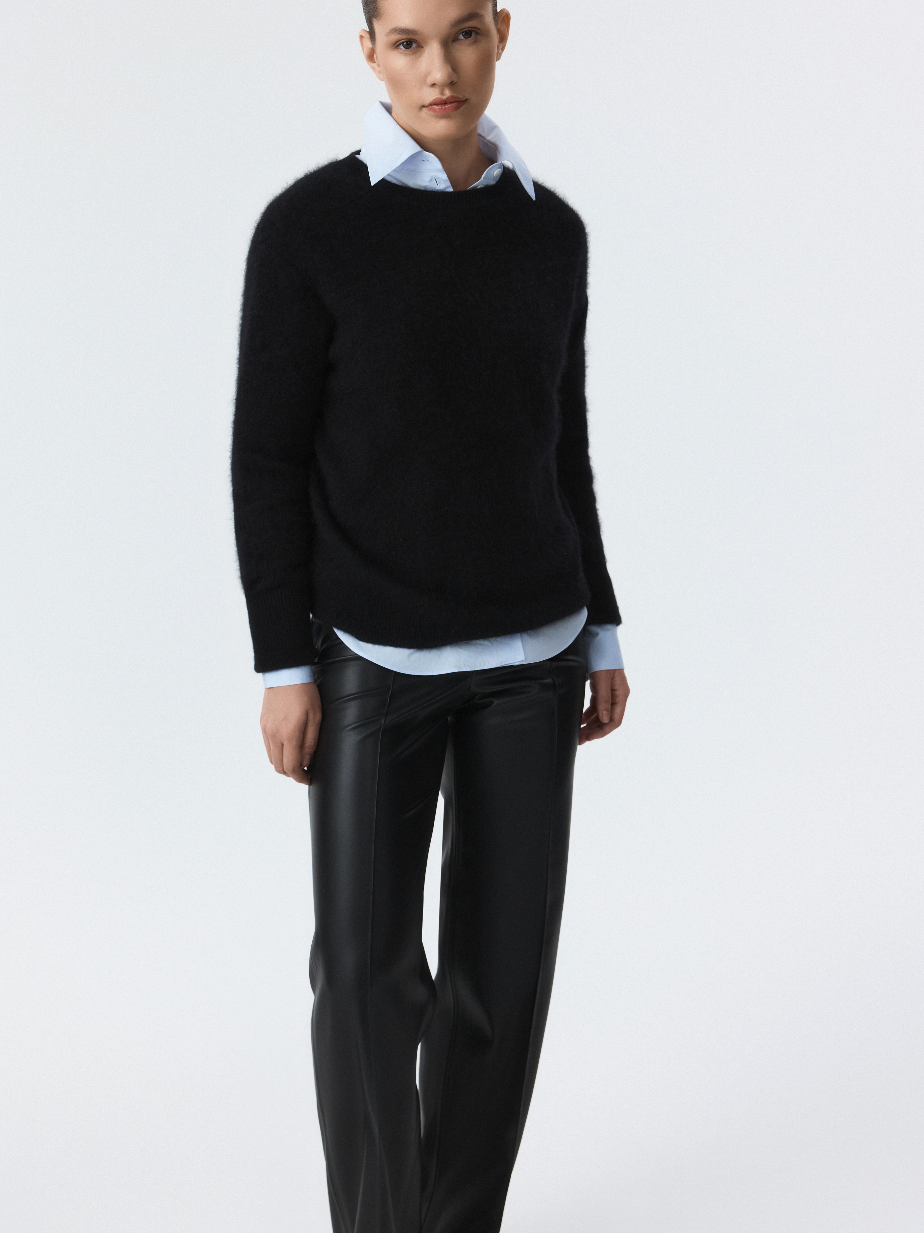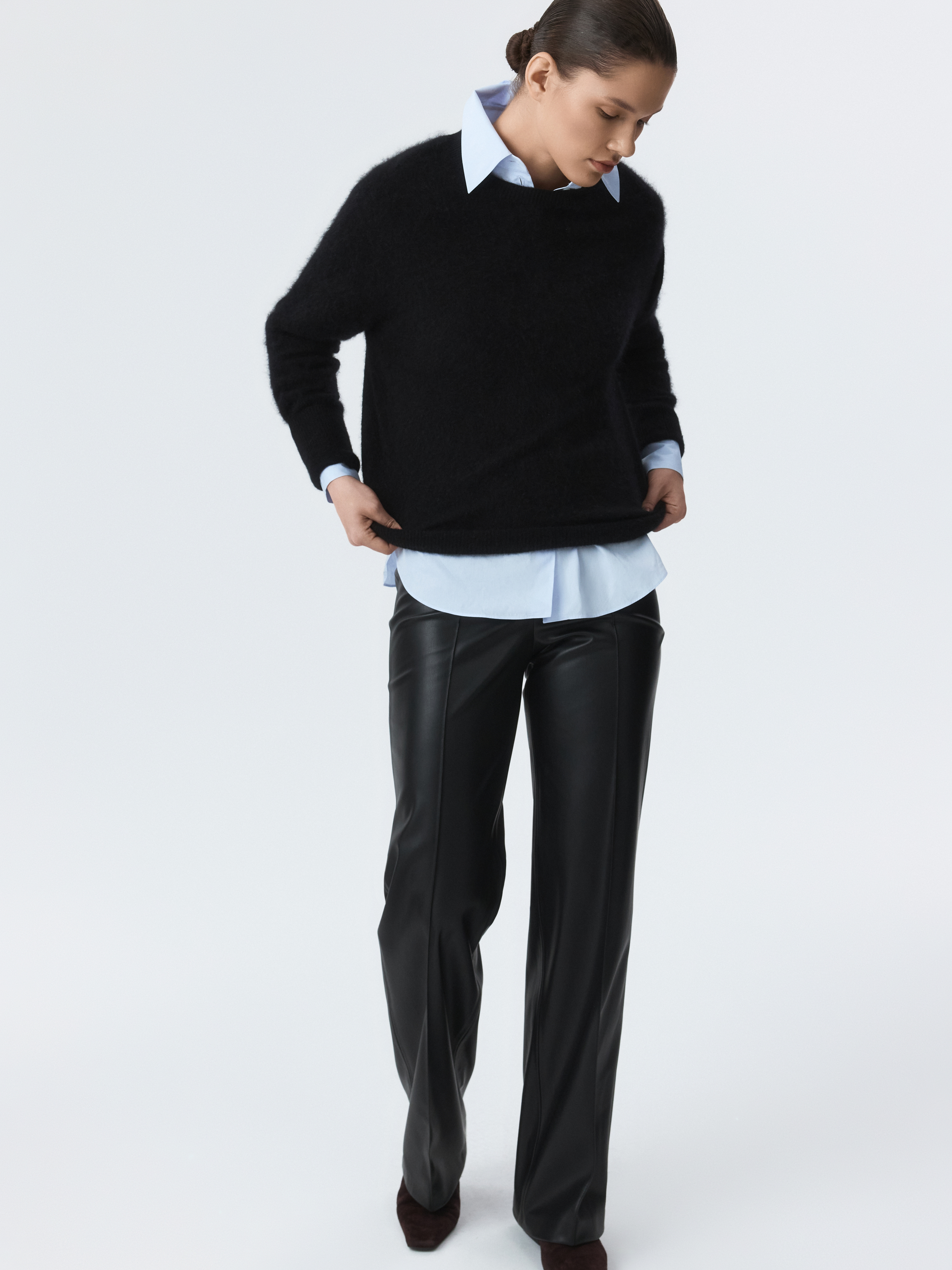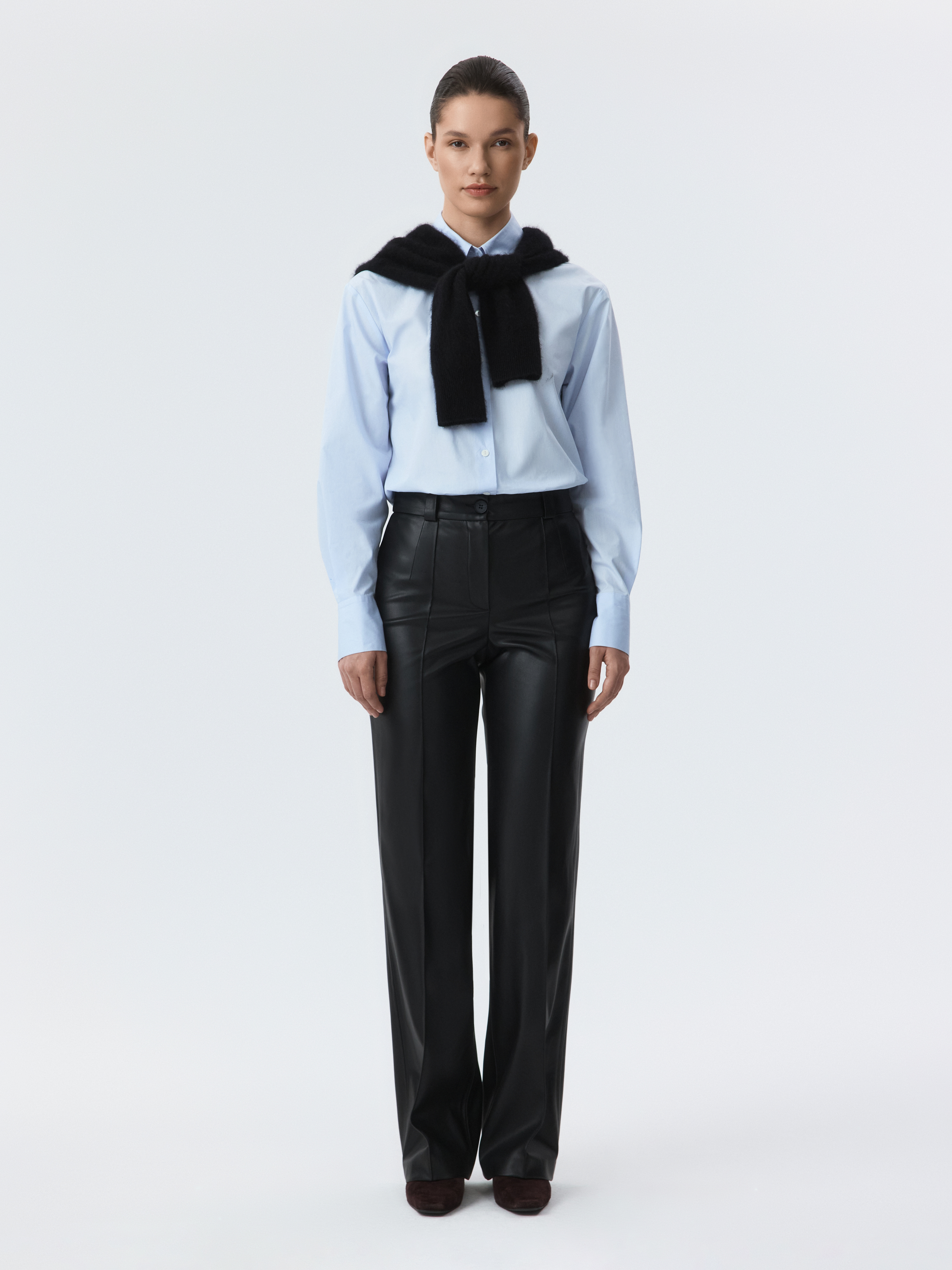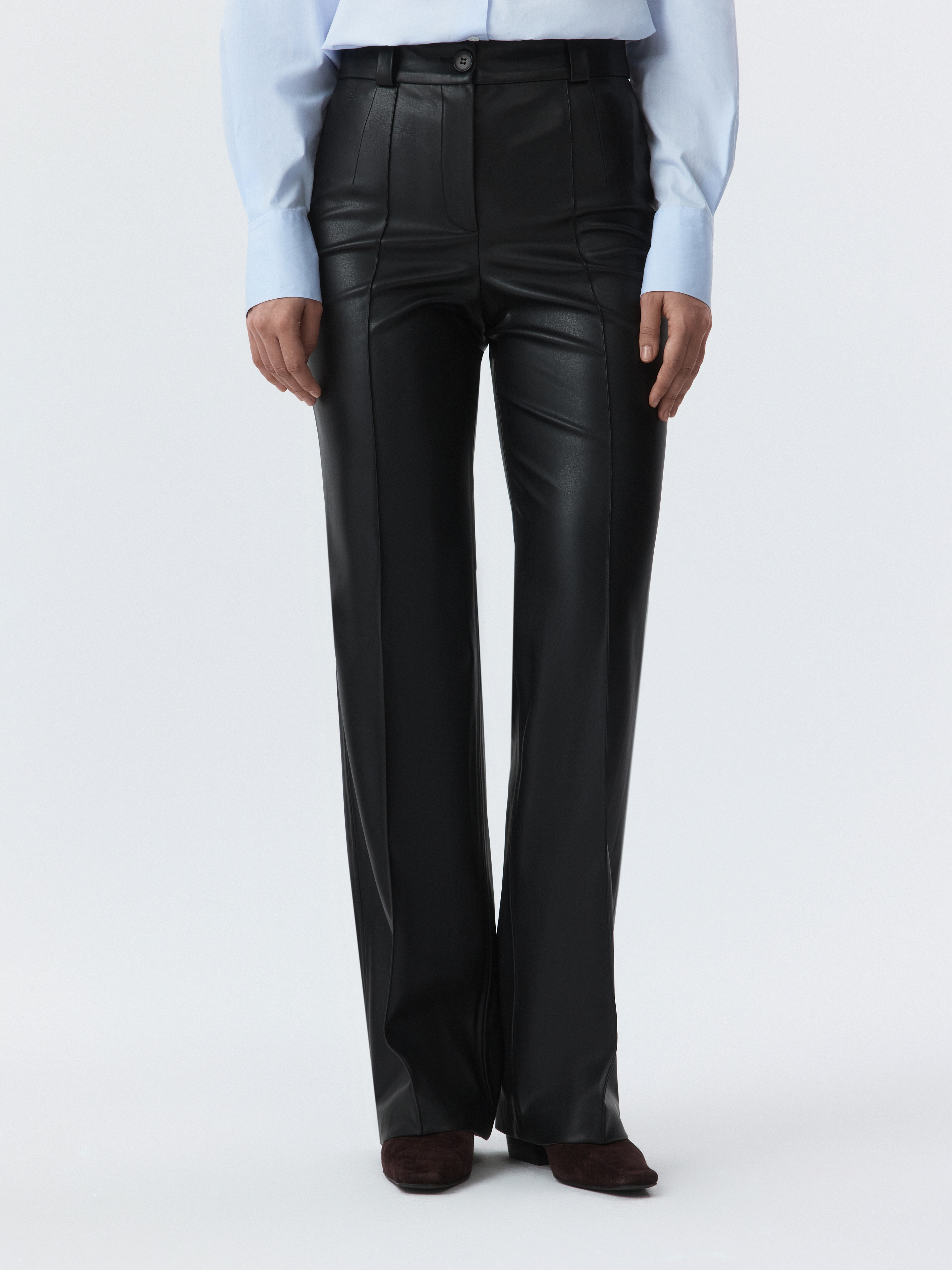 Брюки из экокожи – эффектный способ разбавить базовый гардероб. Изделие из мягкой искусственной кожи позволяет телу дышать, а удобная посадка обеспечивает комфорт в движении. Брюки легко впишутся в любой образ и составят стильные комбинации с как с джемперами, так и с блузами и футболками.