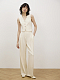 Широкие брюки со стрелками получились максимально женственными. Такими их делает выверенный приталенный крой, подчеркнутый глубоким складками спереди. За комфорт отвечает в меру плотный костюмный текстиль, который не мнется. Модель близка к классике, но легко подружится и с расслабленными вещами: такие брюки можно смело надеть, например, с кедами.