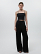 Свободные брюки-трубы из гладкой струящейся ткани средней плотности не просвечивают, а благодаря содержанию натурального льна особенно комфортны в жаркие дни. Широкие брючины дополнены съемными хлястиками, которые формируют зауженный крой. Такой прием визуально стройнит ноги и добавляет образу выразительную деталь.