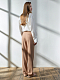 Широкие брюки со стрелками получились максимально женственными. Такими их делает выверенный приталенный крой, подчеркнутый глубоким складками спереди. За комфорт отвечает мягкий струящийся материал, который не мнется. Модель близка к классике, но легко подружится и с расслабленными вещами: такие брюки можно смело надеть, например, с кедами.