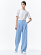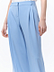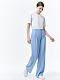 Брюки-палаццо полной длины рекомендуем комбинировать с обувью на каблуке. Струящаяся ткань идеальна для лета: она создает ощущение прохлады и приятно прилегает к телу. Защипы спереди формируют изящную драпировку, а заутюженные стрелки выстраивают вертикаль силуэта.