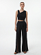 Свободные брюки с разрезами будут удачно сочетаться и с городскими, и с отпускными образами. Благодаря содержанию волокон конопли материал получился дышащим и комфортным для жаркой погоды. В сочетании с жакетом из этого же материала легко создать стильный костюм на каждый день.