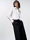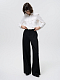Брюки в расслабленном стиле – абсолютный хит деловой капсулы. Они удобно сидят по фигуре и не сковывают движения. Костюмная ткань средней плотности не вытягивается. Модель свободного кроя отличают крупные защипы спереди и декоративный клапан на пуговице.