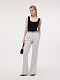 Расклешенные брюки с разрезами сбоку – актуальный фасон уже несколько сезонов. Облегающие сверху и расклешенные книзу, брюки создают изящный силуэт и делают ноги визуально стройнее. Плотная костюмная ткань подходит для строгого офисного дресс-кода, сочетаясь с блузами.