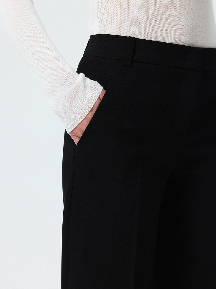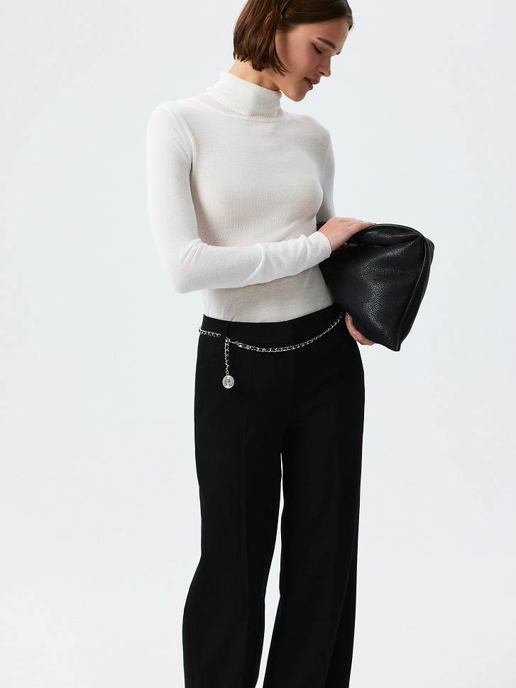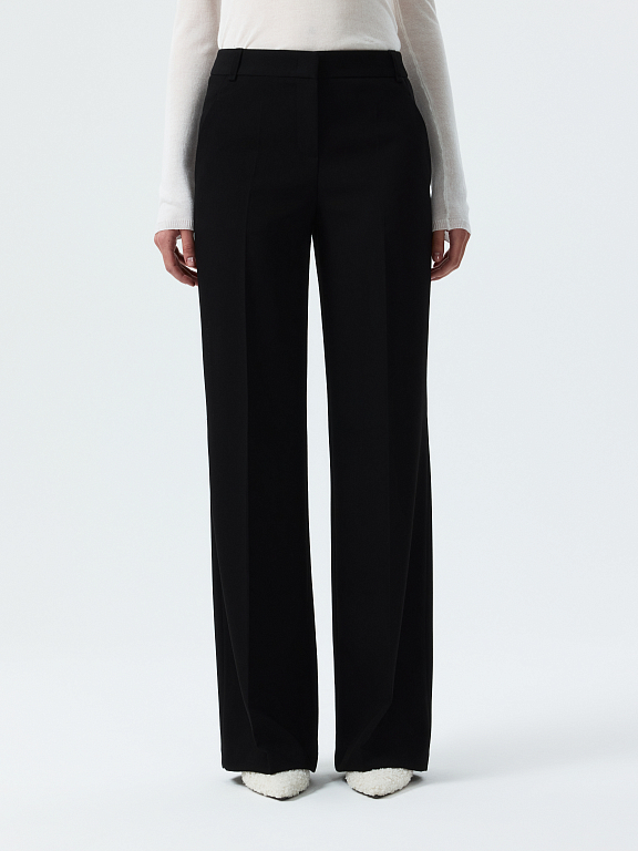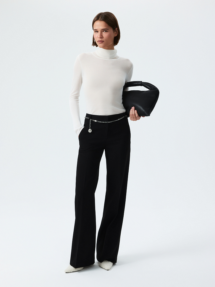 Классические брюки оправдывают себя в комбинациях с любым верхом: от офисных рубашек до повседневных футболок. Костюмный текстиль средней плотности мягко прилегает и не тянется. Сочетайте с жакетом из той же ткани, чтобы составить утонченный и элегантный комплект.