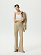 Расклешенные брюки со стрелками позволят чувствовать себя уверенно даже в жаркий сезон. В меру плотный текстиль с волокнам натурального хлопка и льна обладает дышащими свойствами и дарит комфорт. Стилизуйте с аналогичным топом или базовым трикотажем.
