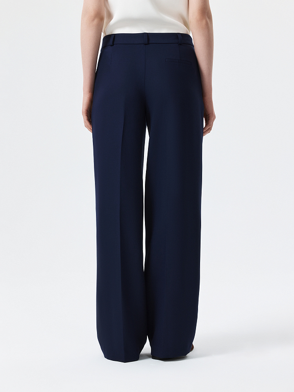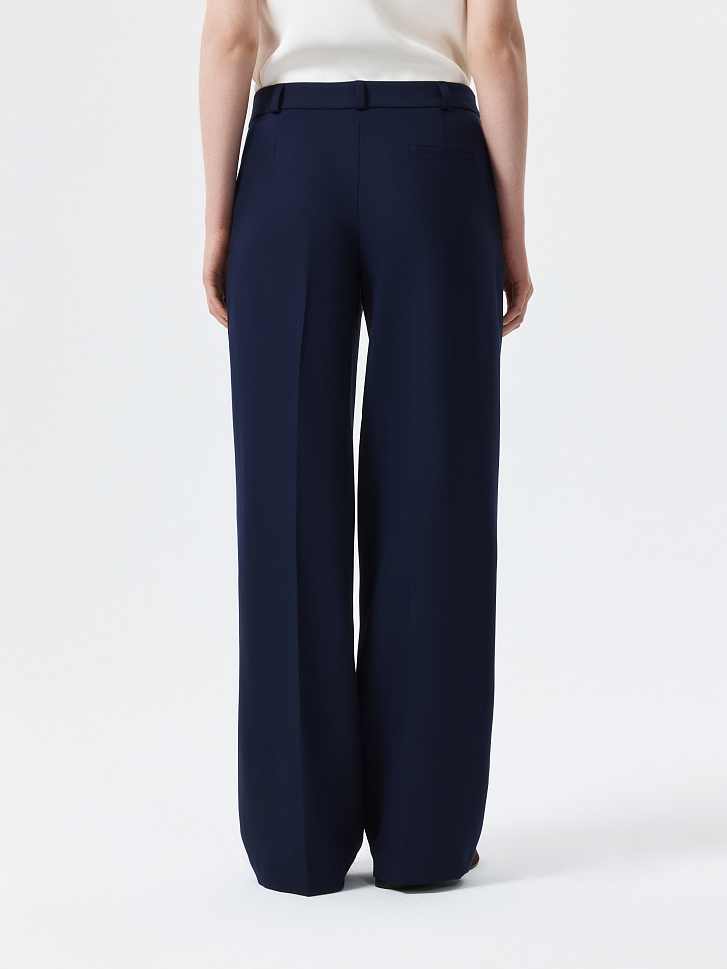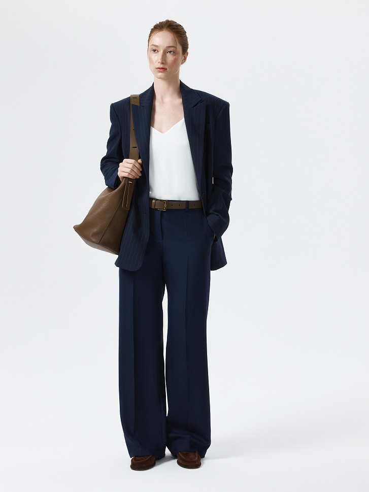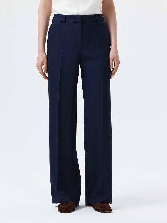Прямые брюки со стрелками – практичная база на каждый день. Плотный костюмный текстиль из поливискозы не тянется и обладает износоустойчивостью. Собранный и элегантный образ получится с парным жакетом.