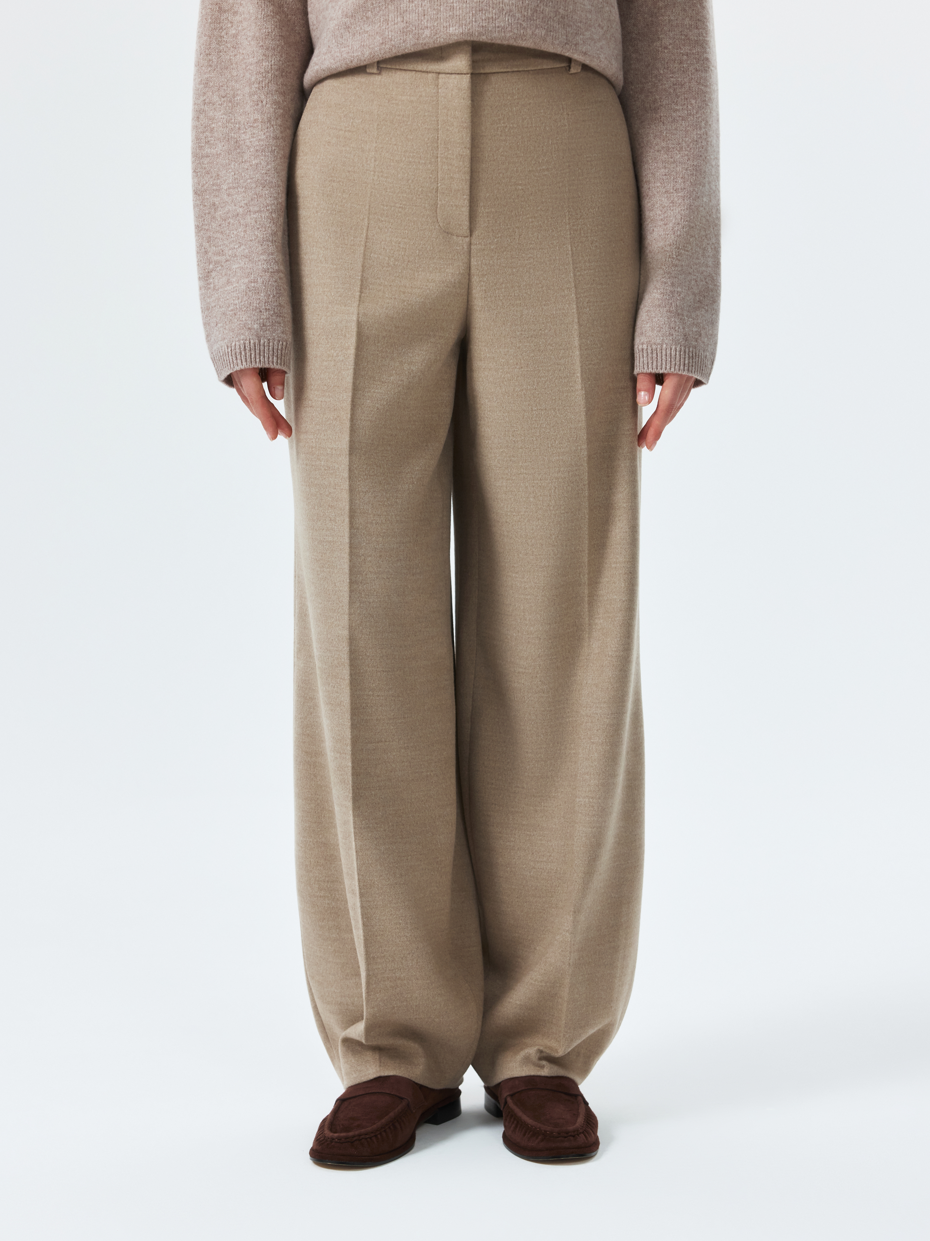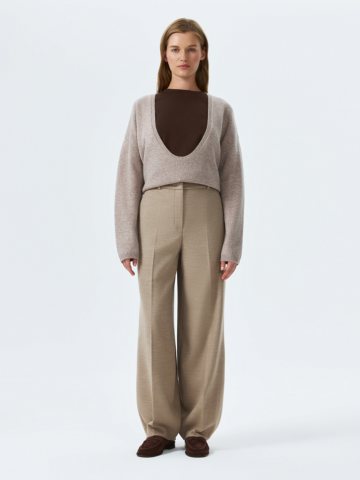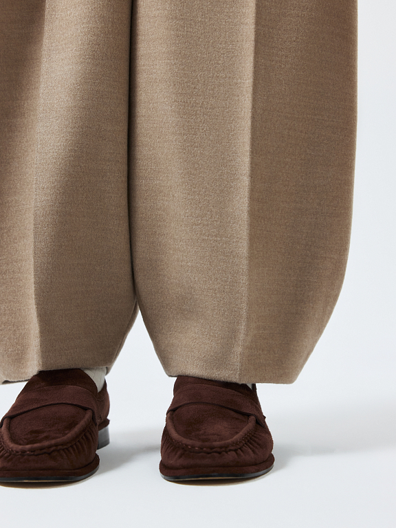 Брюки-бананы со стрелками — воплощение современной классики. Плотный ворсистый текстиль из фланели не продувается и сохраняет тепло. Модель расслабленного кроя сужается книзу и не сковывает движения.