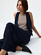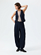 Шаровары из костюмной ткани помогут выстроить современный деловой гардероб. В меру плотный текстиль из поливискозы в полоску не тянется и комфортно прилегает к телу. Дополнить стильный комплект поможет жилет из аналогичного материала.