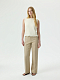 Прямые брюки со стрелками – универсальная классика, которая впишется даже в летний гардероб. Плотный смесовый текстиль из хлопка и льна «в елочку» комфортно прилегает к телу и не просвечивает. Дополнить костюм можно жакетом из аналогичного материала.