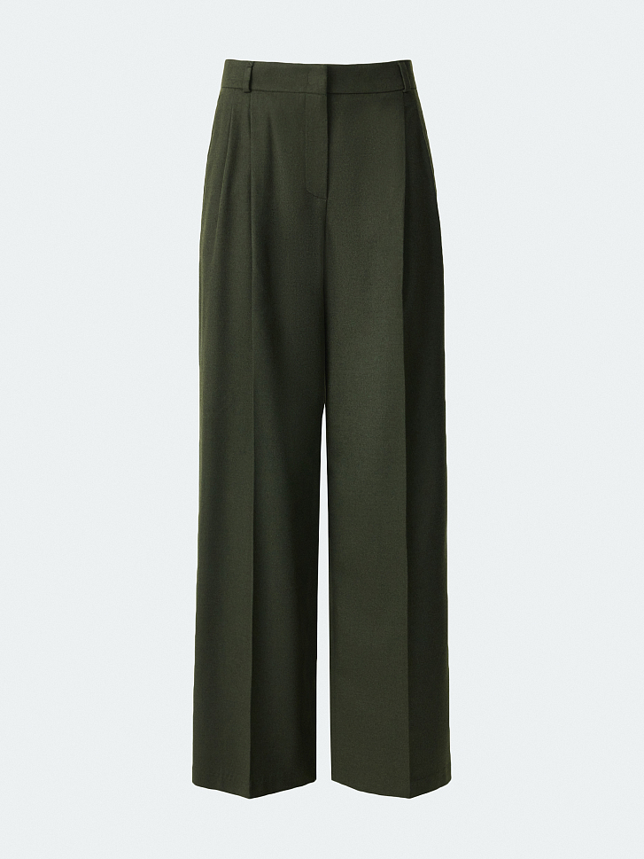 Широкие брюки со стрелками подойдут для рабочих будней и для неформальных встреч в выходные. Тонкая фланель, приятная на ощупь, мягко прилегает и комфортно сидит по фигуре. Модель расслабленного кроя не сковывает движения.