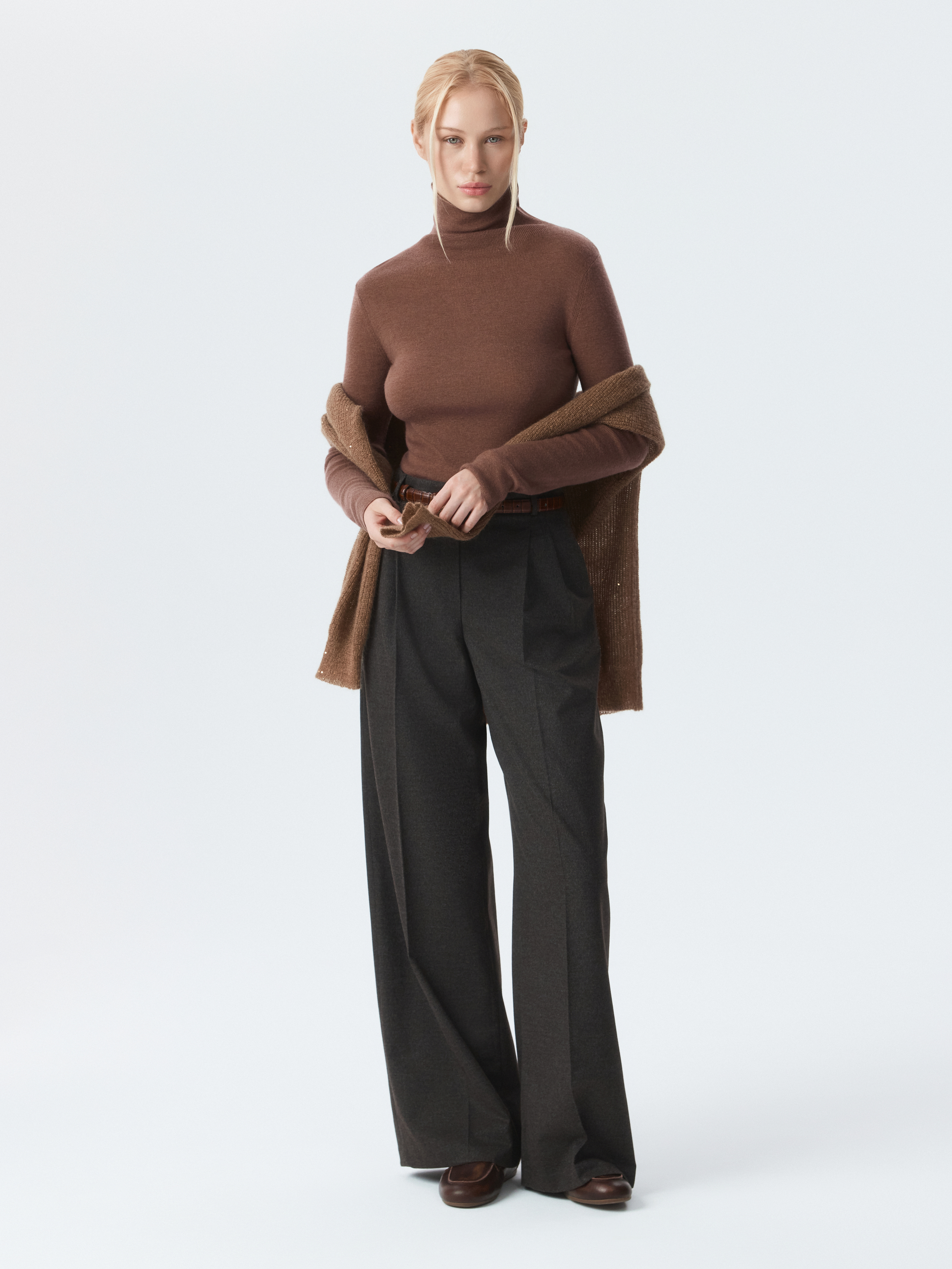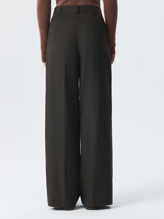 Широкие брюки со стрелками подойдут для рабочих будней и для неформальных встреч в выходные. Тонкая фланель, приятная на ощупь, мягко прилегает и комфортно сидит по фигуре. Модель расслабленного кроя не сковывает движения.
