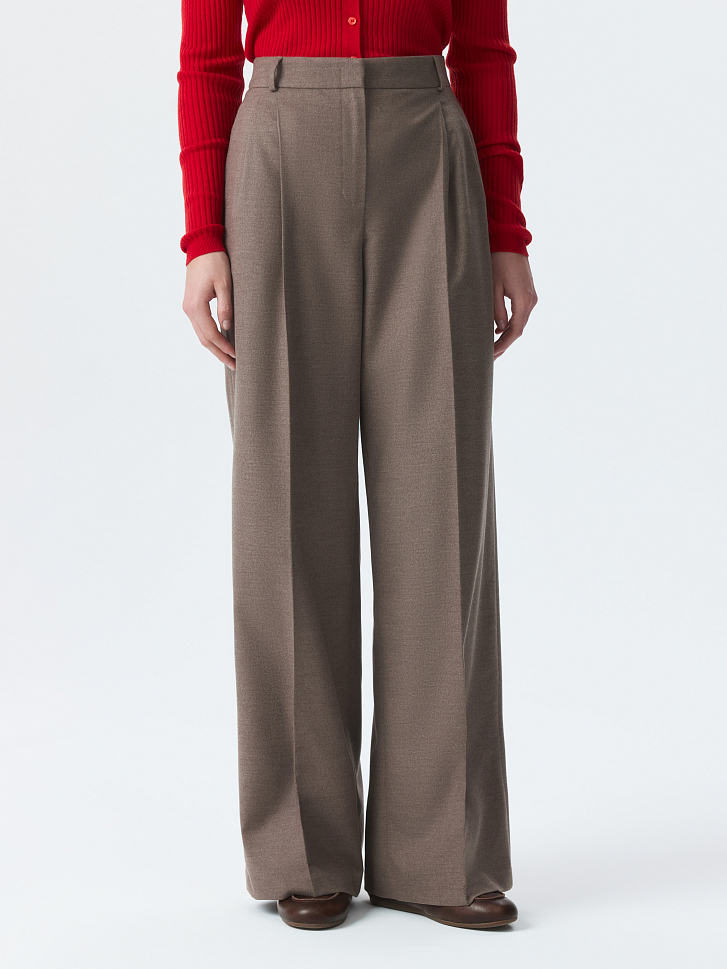 Широкие брюки со стрелками подойдут для рабочих будней и для неформальных встреч в выходные. Тонкая фланель, приятная на ощупь, мягко прилегает и комфортно сидит по фигуре. Модель расслабленного кроя не сковывает движения.