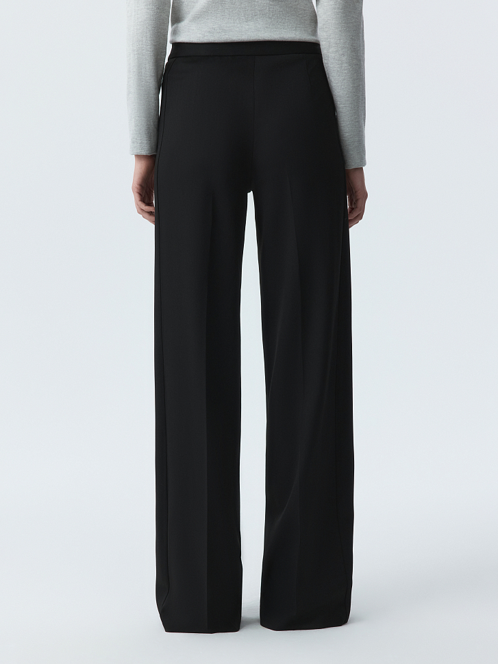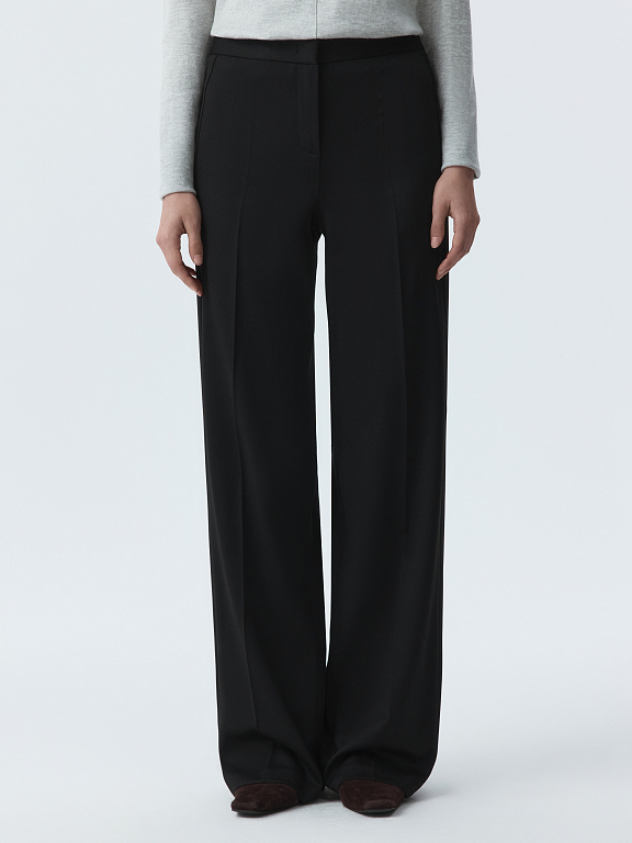Костюмные брюки легко адаптируются под разные стили — от делового до вечернего. В меру плотный текстиль из поливискозы не вытягивается и не требует особого ухода. Модель свободного кроя сформирует расслабленный и динамичный силуэт без дискомфорта в движении.