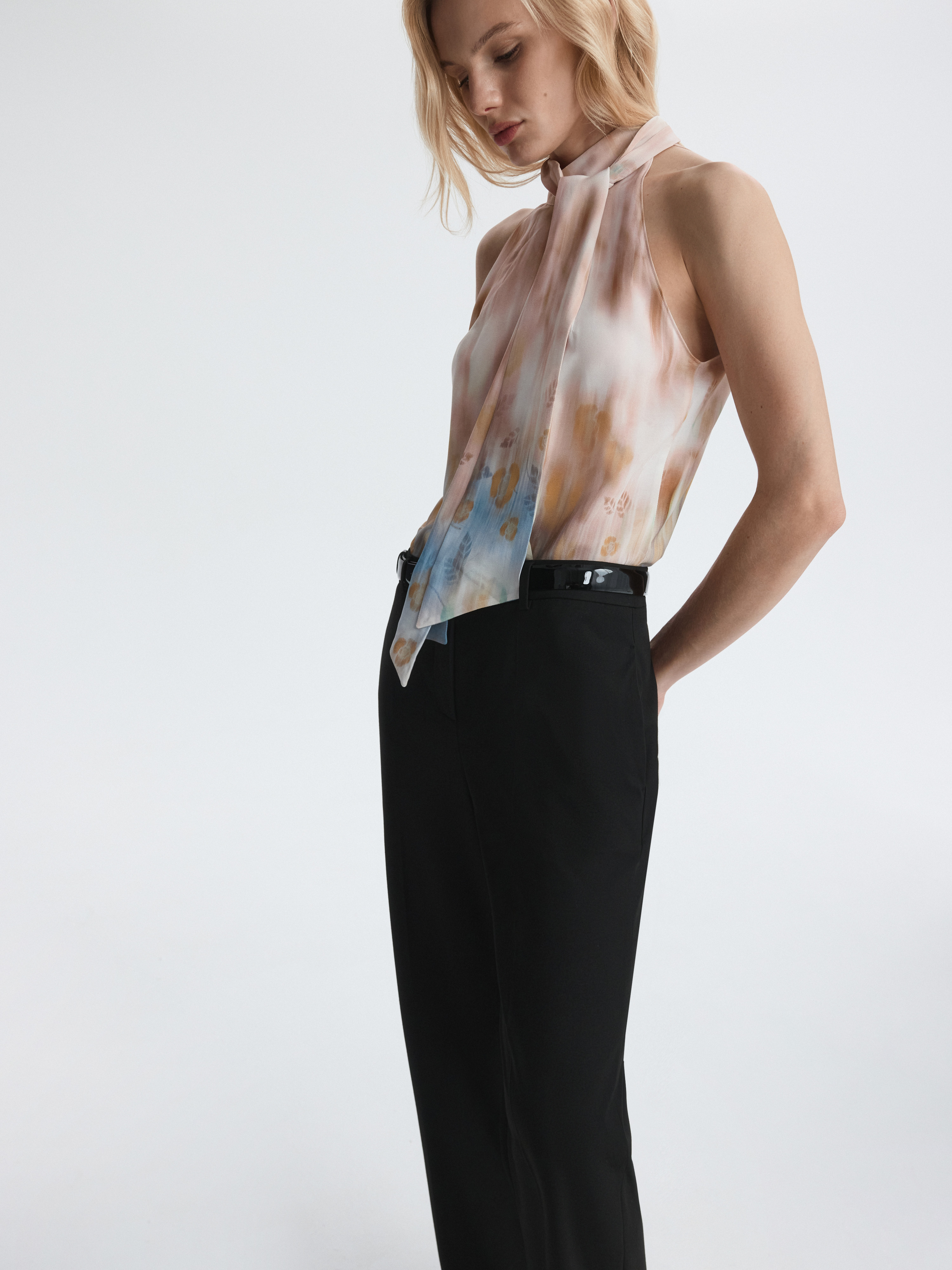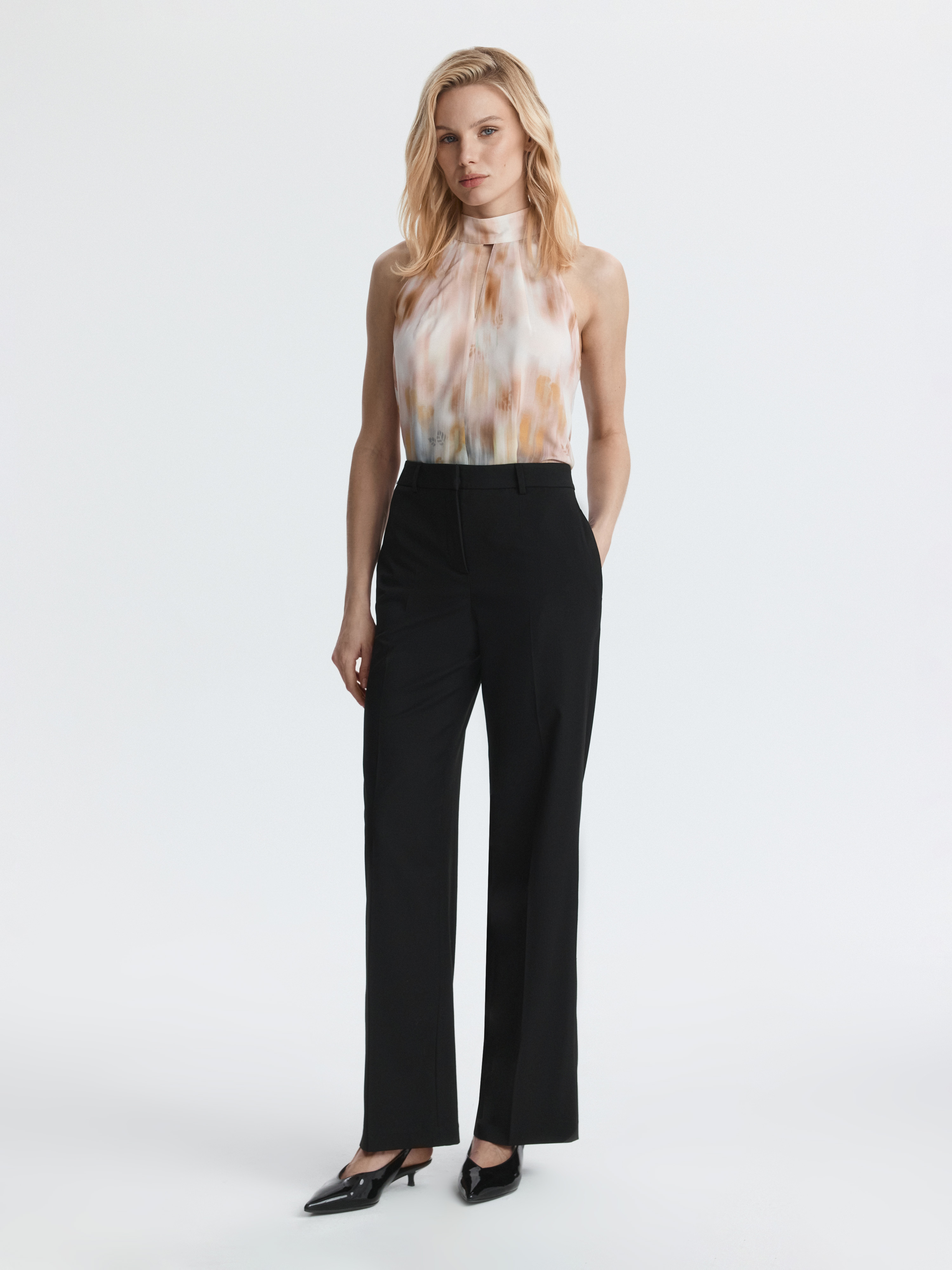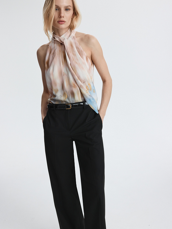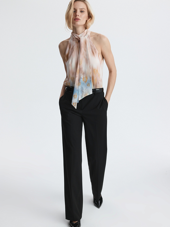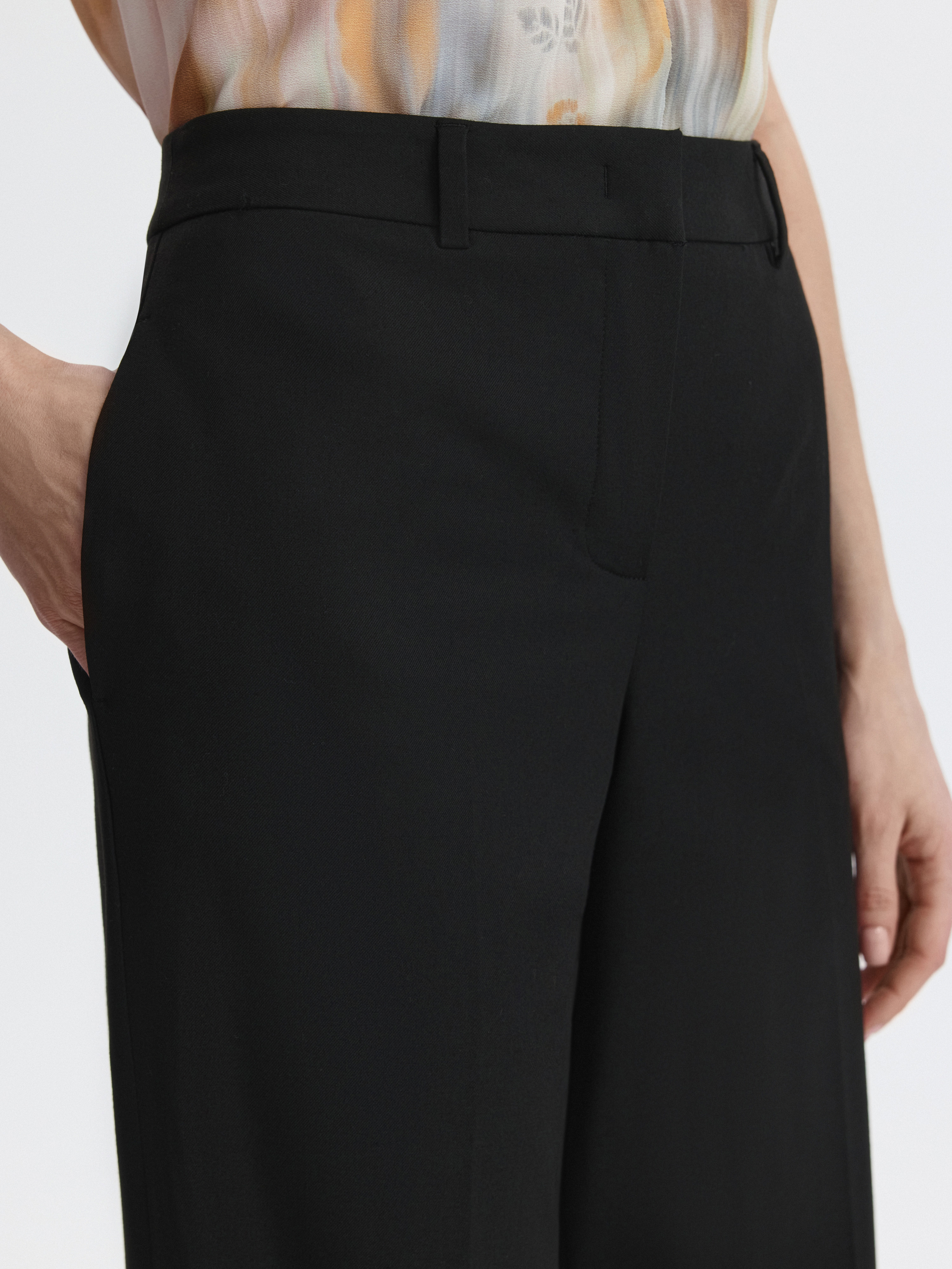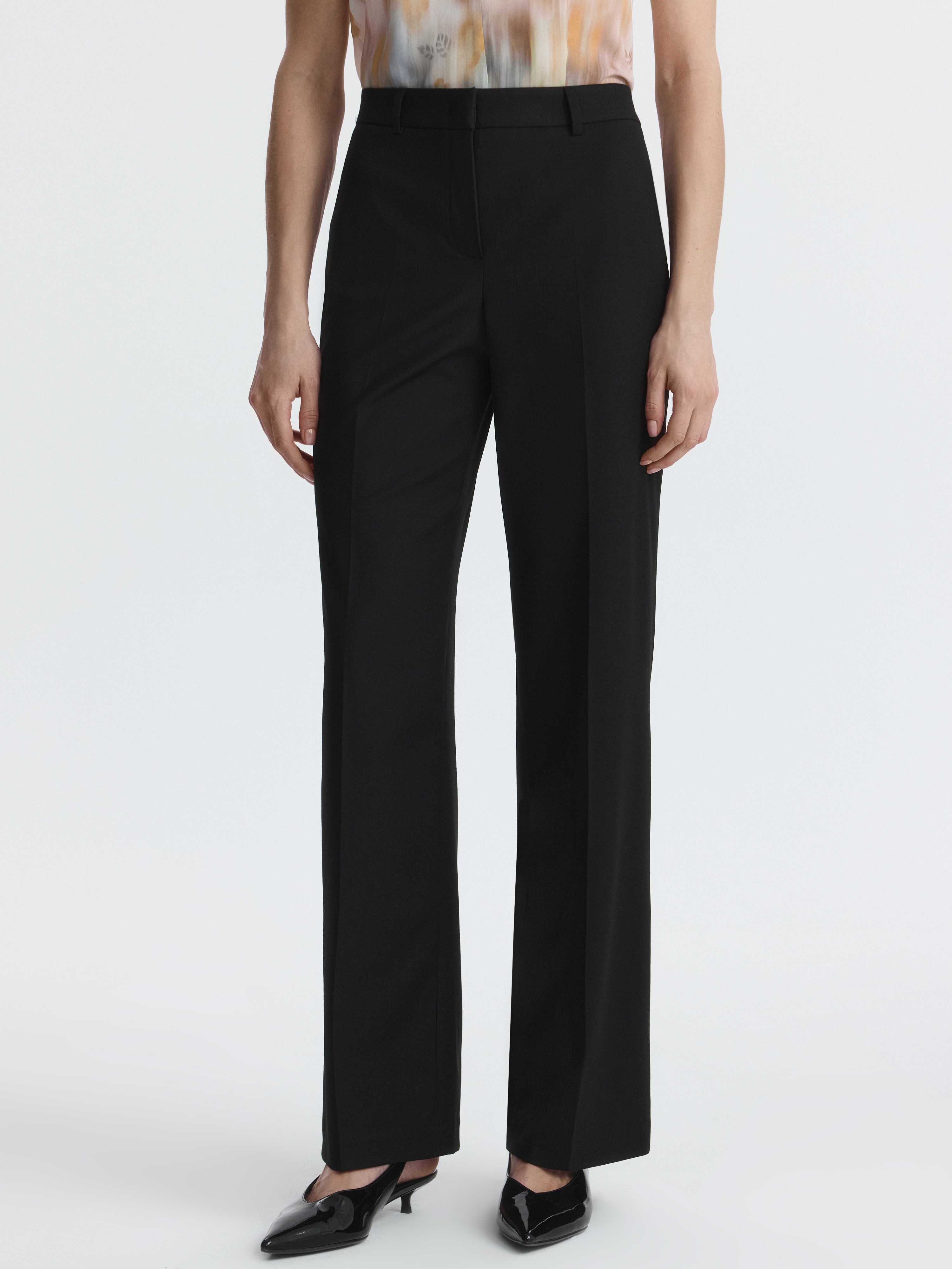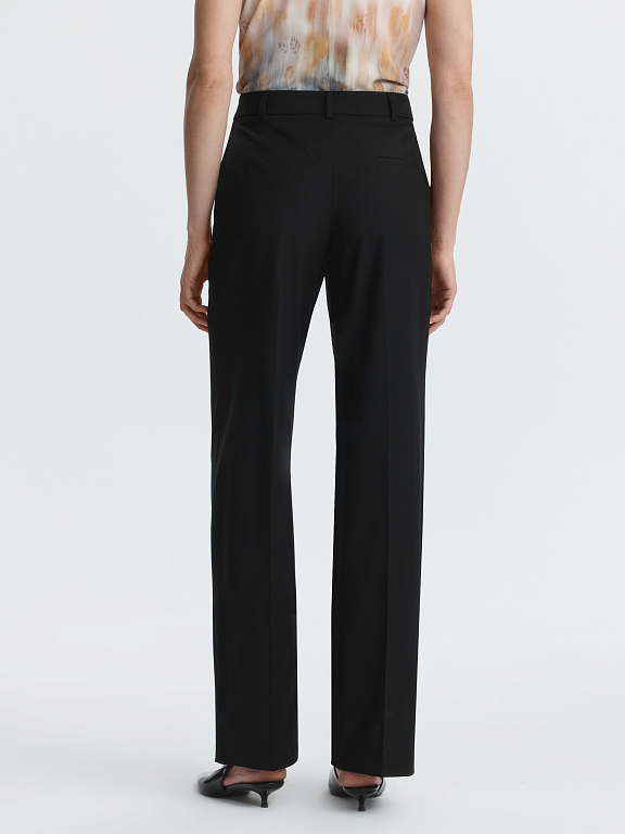 Прямые костюмные брюки с четкими стрелками станут основой как делового, так и повседневного гардероба. В меру плотный текстиль из поливикозы не тянется и не мнется. Модель расслабленно сидит по фигуре без дискомфорта.