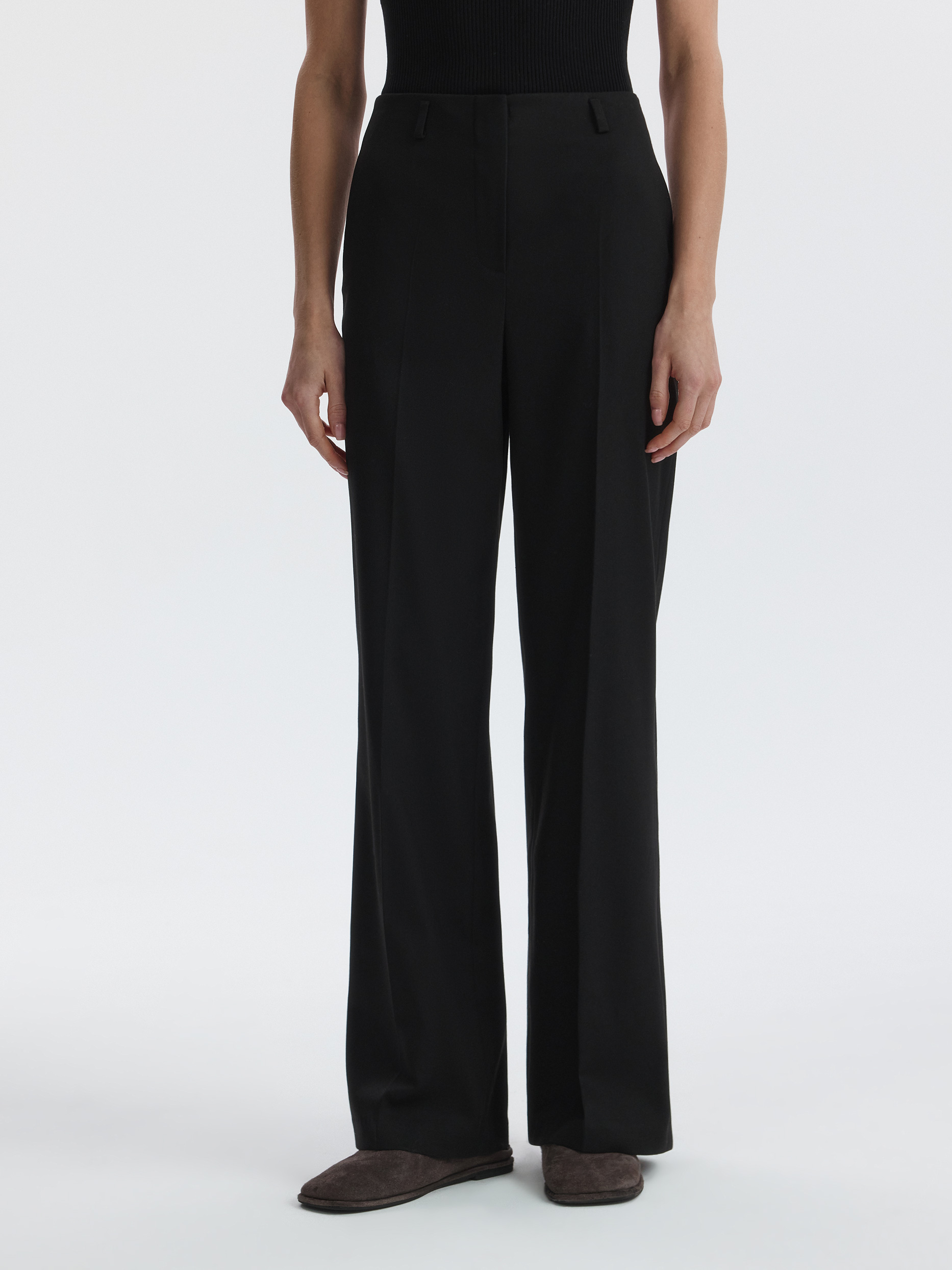 Прямые костюмные брюки «в ёлочку» – это свежее решение для делового гардероба. Плотный твидовый текстиль не мнется и хорошо держит форму, а благодаря шерстяным волокнам в нем будет комфортно в прохладную погоду.