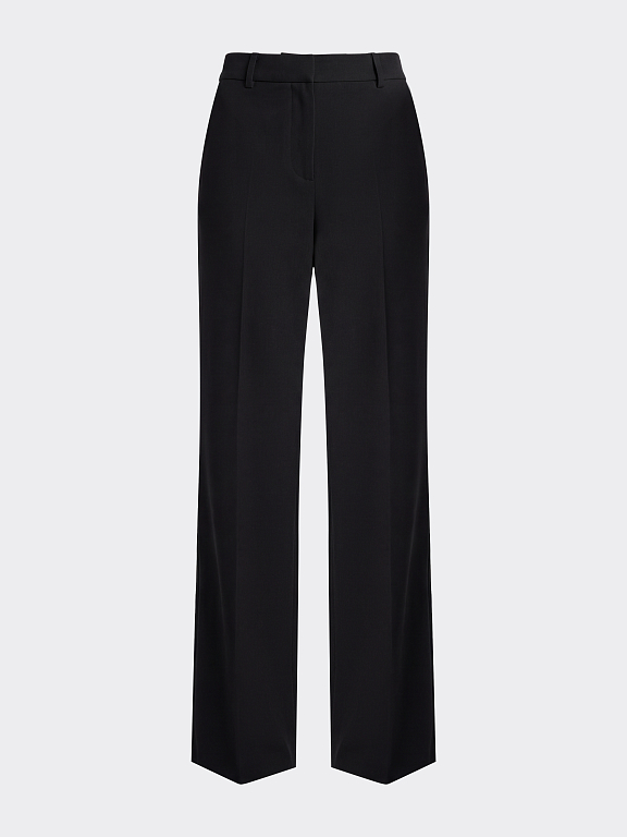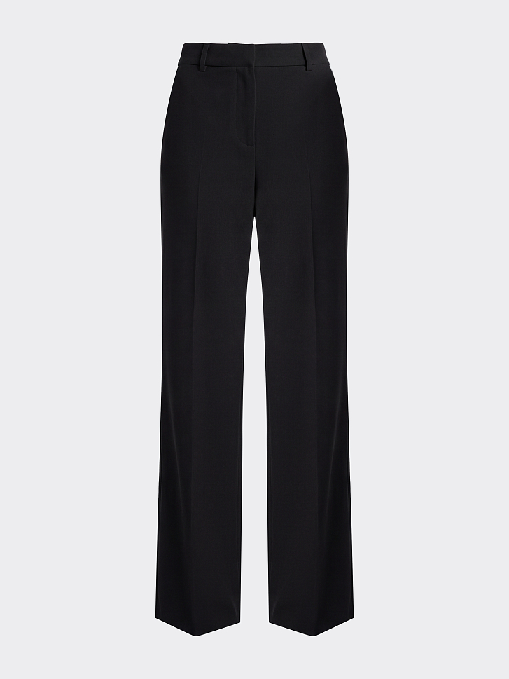 Костюмные брюки прямого кроя выглядят свежо за счет фактуры ткани. Для пошива модели выбрали твидовый текстиль «в елочку», который не мнется и хорошо держит форму, а благодаря шерстяным волокнам будет комфортно в прохладную погоду. Дополнить образ можно парным жакетом.