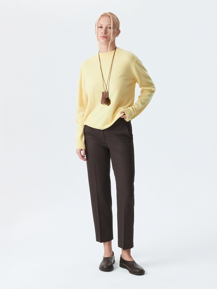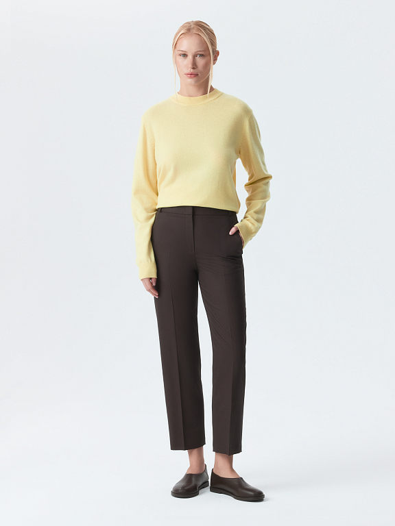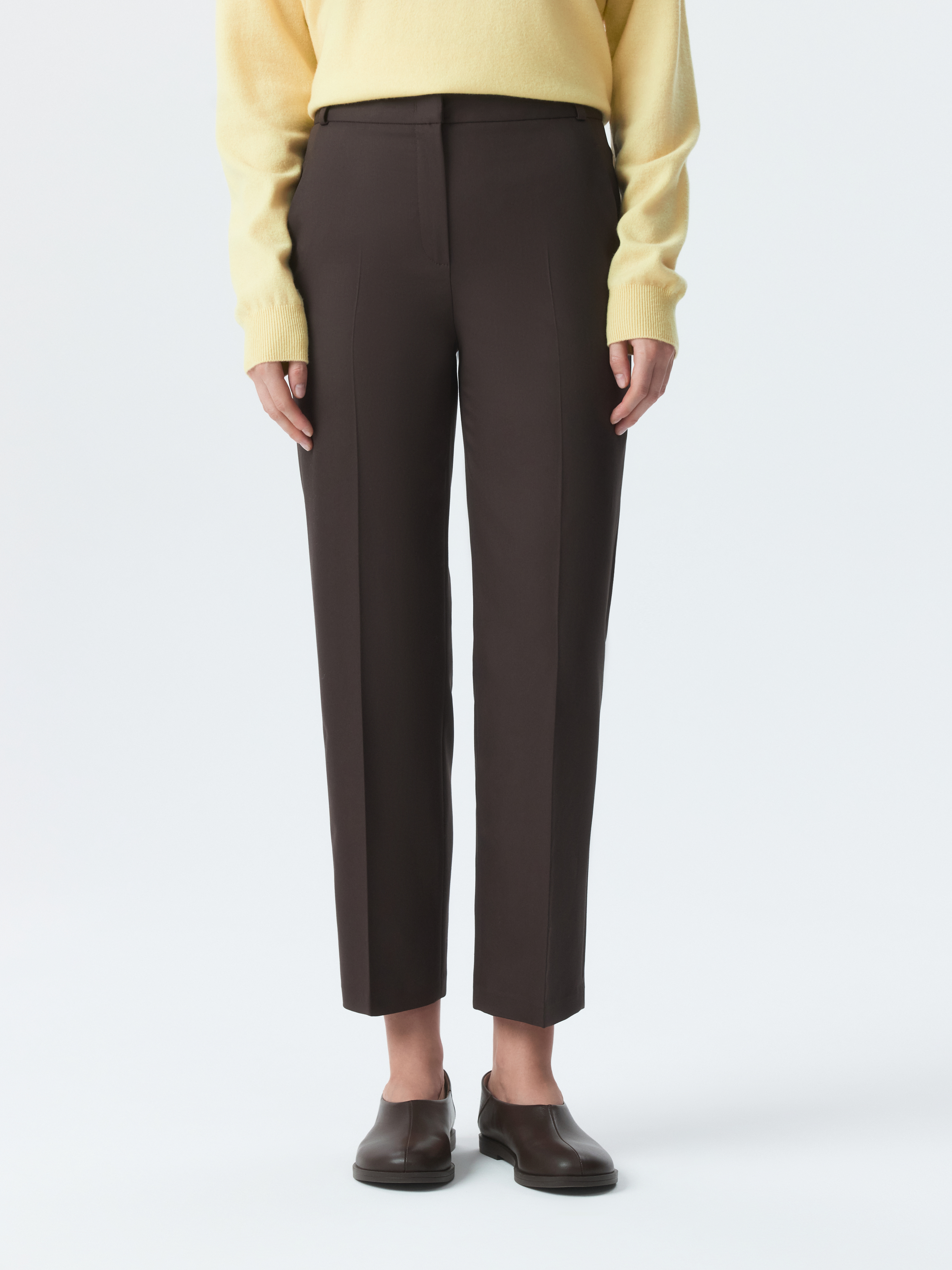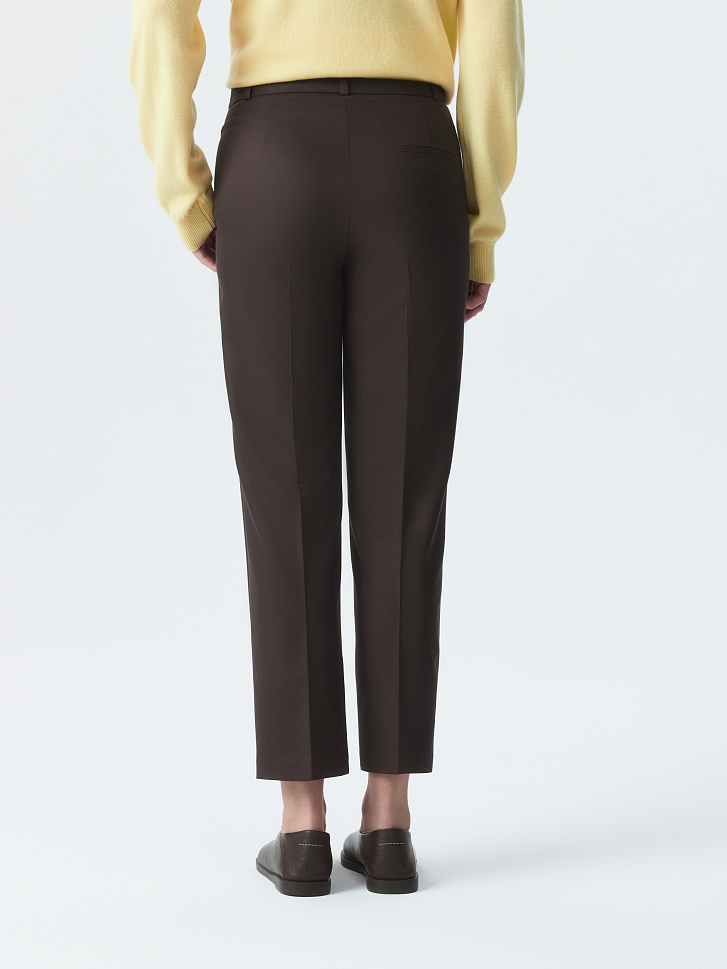 Облегающие брюки в классическом стиле будут актуальны на все случаи жизни. В меру плотный костюмный текстиль на основе вискозы не тянется и комфортно сидит по фигуре, аккуратно подчеркивая силуэт. Укороченная модель 7/8 сочетается с обувью на каблуке и на плоском ходу.