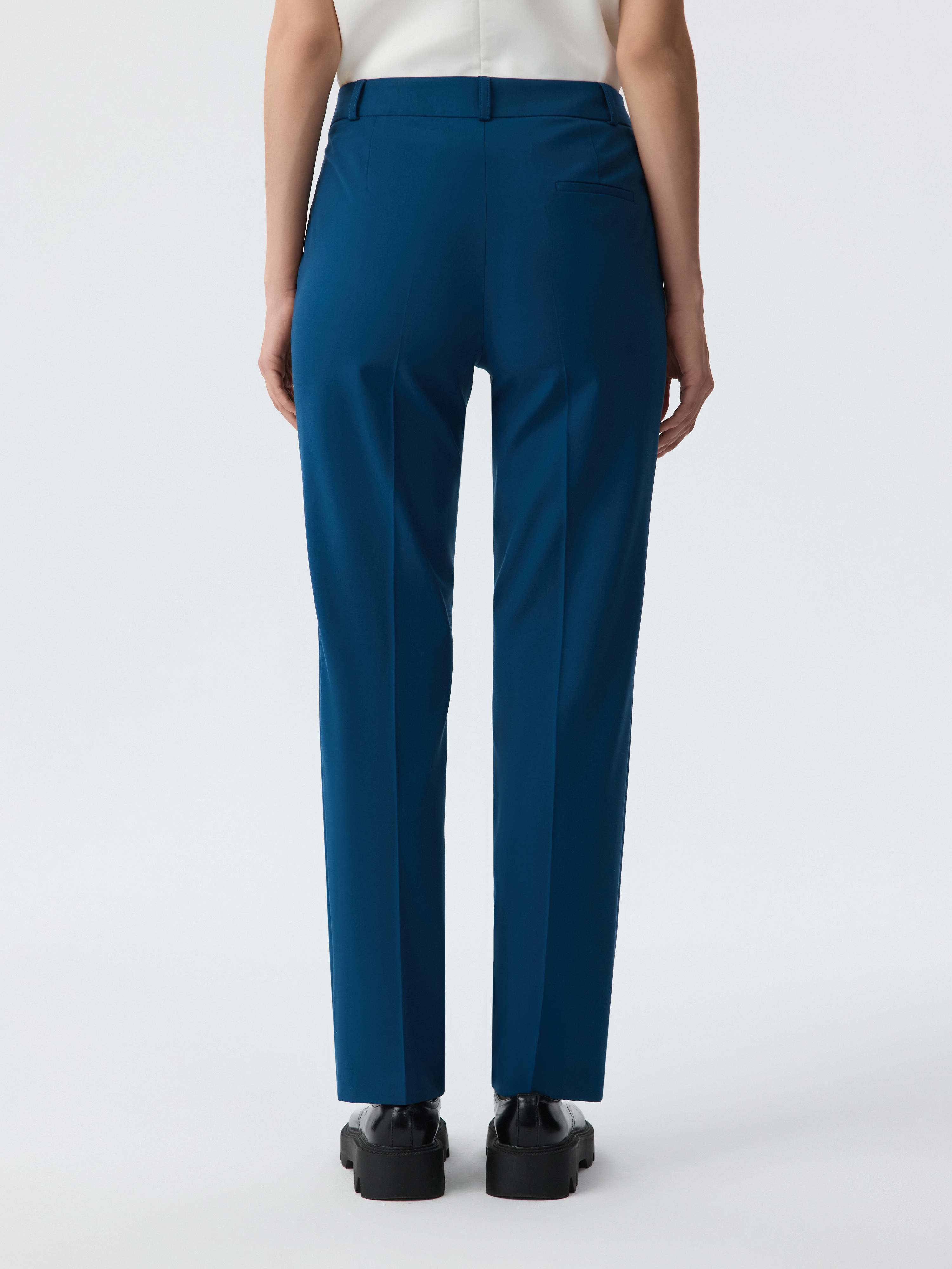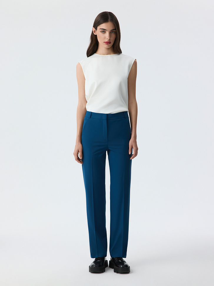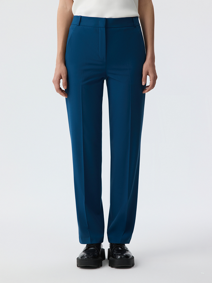 Облегающие брюки лаконичного дизайна – это модель для тех, кто любит минимализм. В меру плотный костюмный текстиль из поливикозы не тянется и не мнется, сохраняя форму стрелок. Носите в сочетании с парным жакетом (4-19204_40295M) или как самостоятельный элемент образа.
