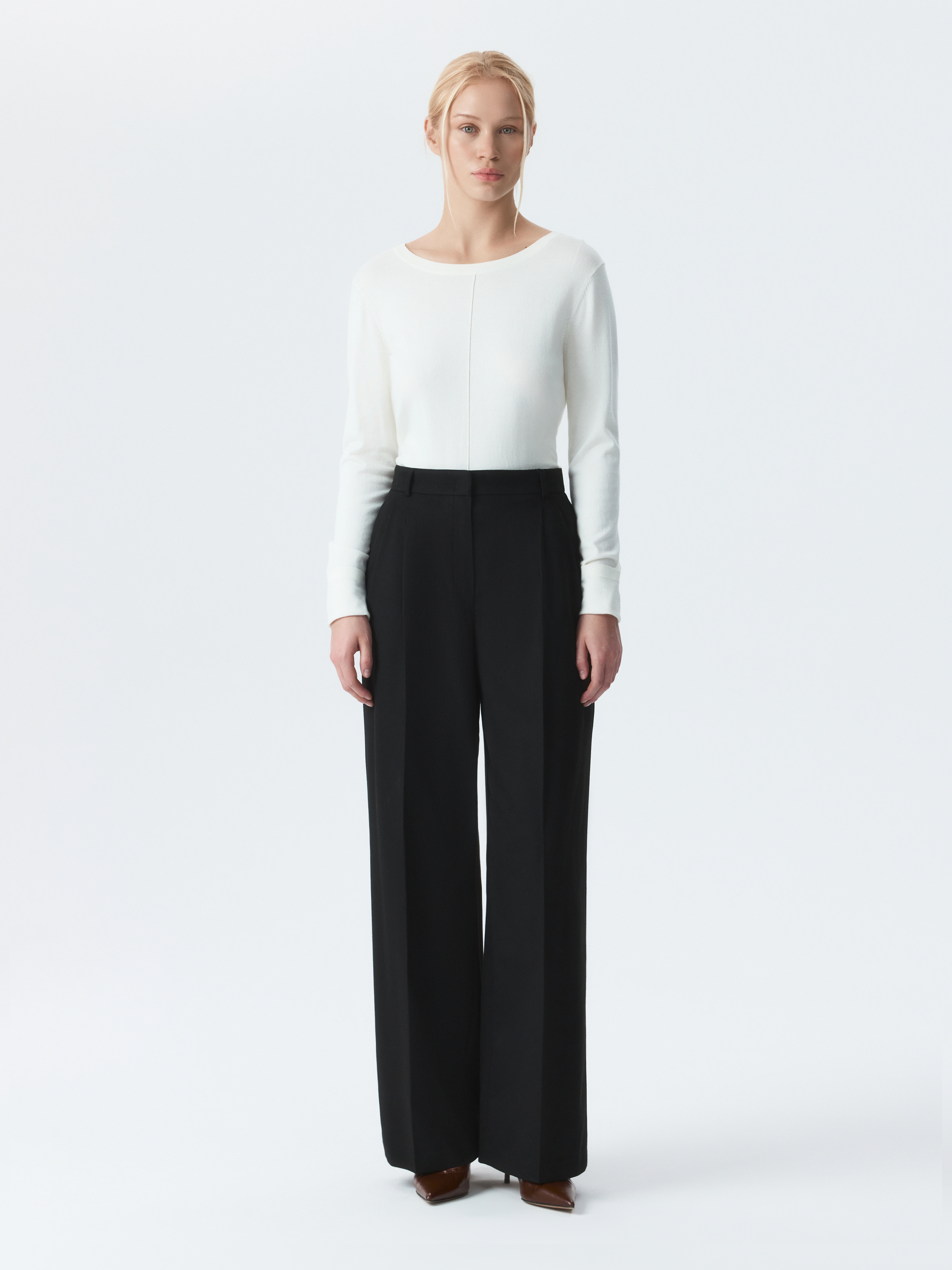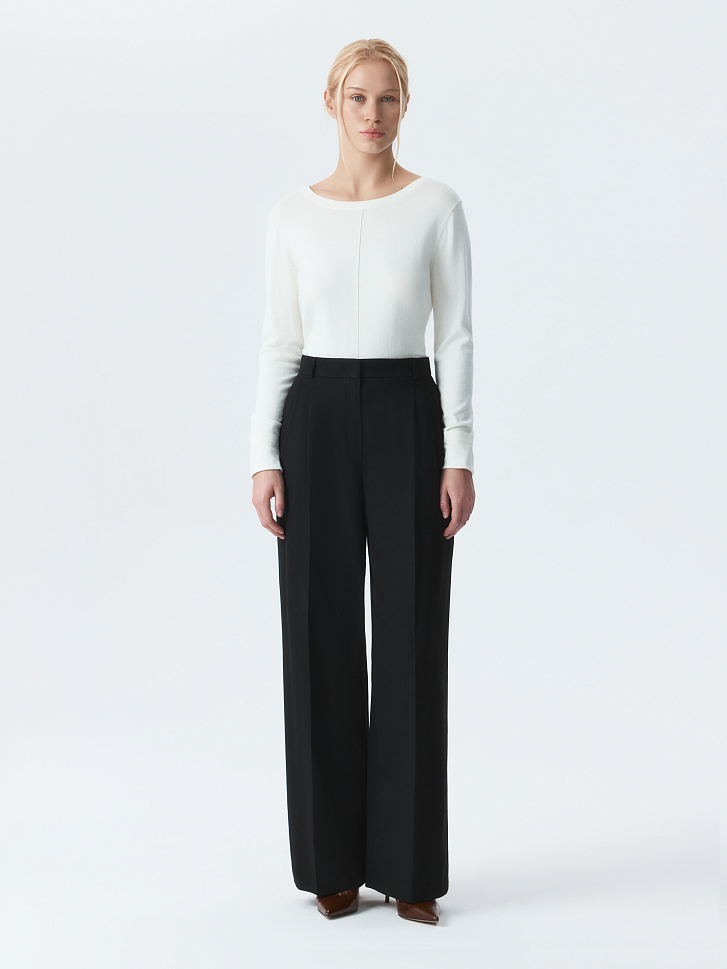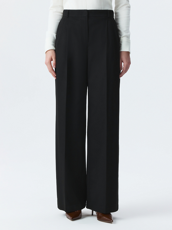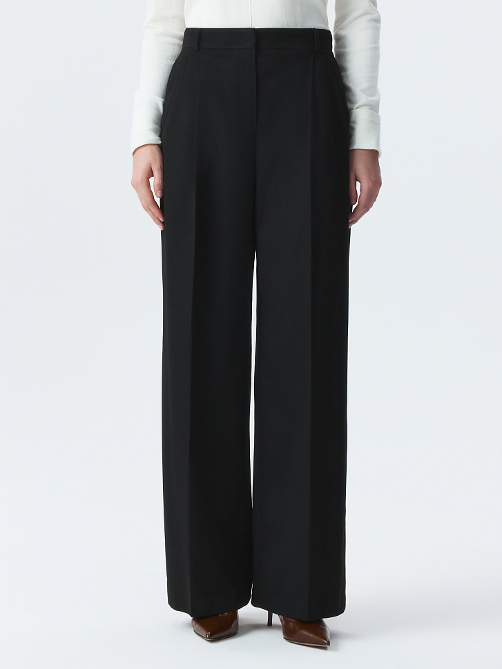 Широкие брюки со стрелками подойдут для рабочих будней и для неформальных встреч в выходные. Тонкая фланель, приятная на ощупь, мягко прилегает и комфортно сидит по фигуре. Модель расслабленного кроя не сковывает движения.