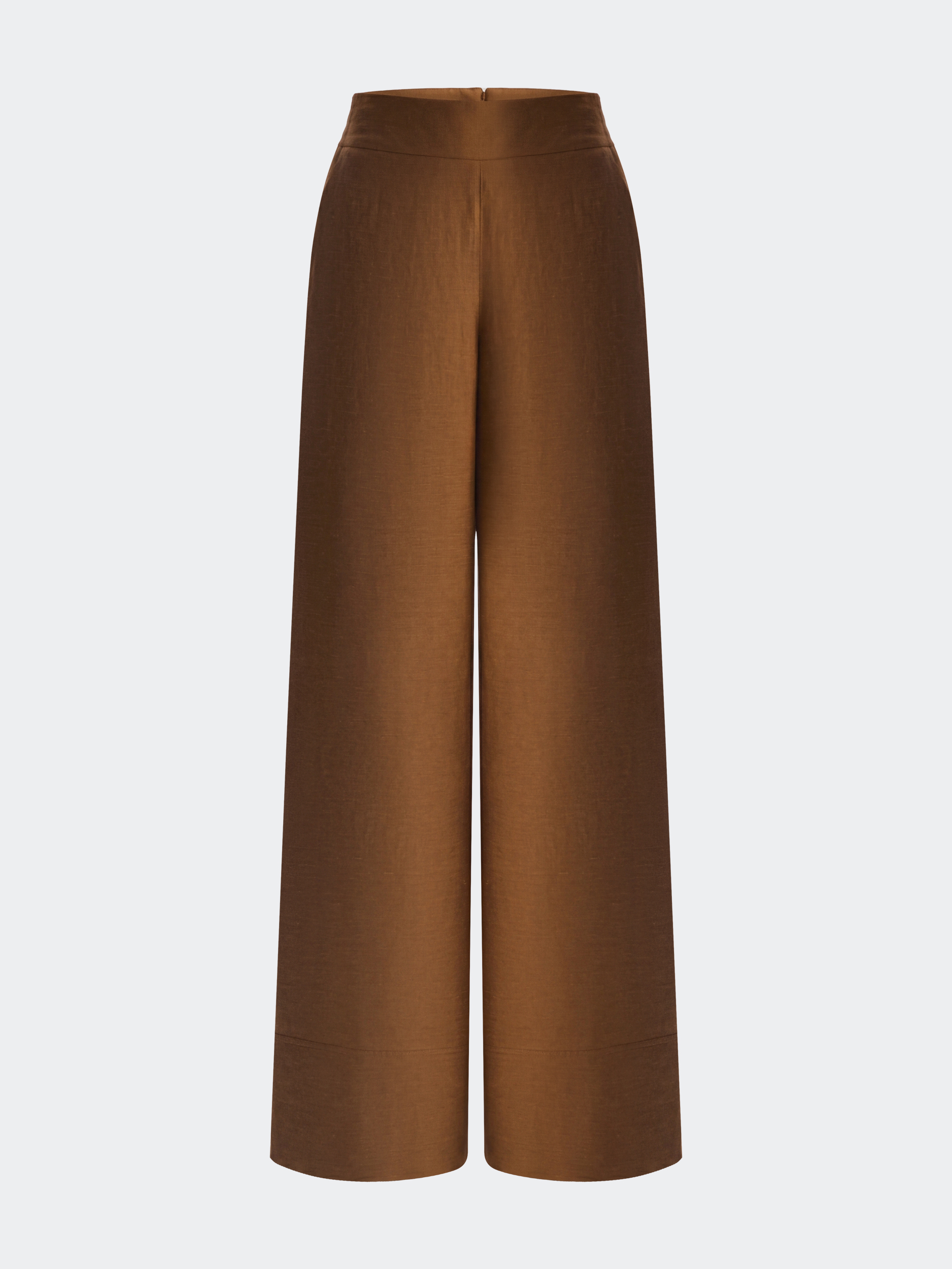 Свободный крой, дышащий материал и удобная посадка делают эти летние брюки ключевым элементом в базовом гардеробе. Тонкий текстиль с волокнами конопли не пропускает ультрафиолет и создает ощущение прохлады. Брюки-палаццо пригодятся для построения офисных образов и на пляжном отдыхе.