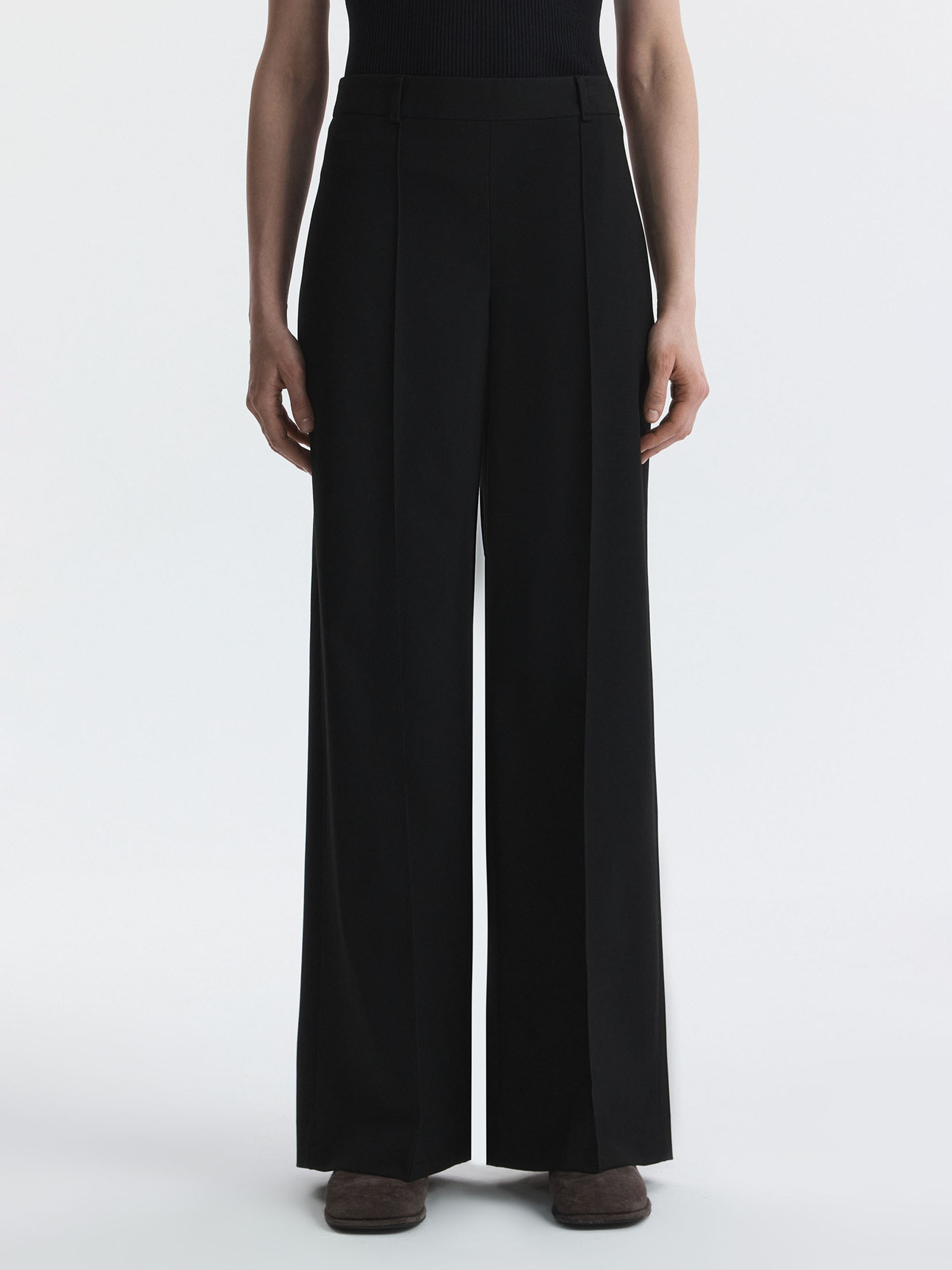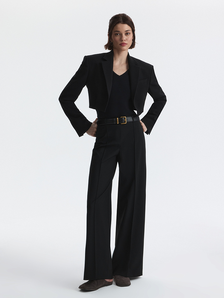 Универсальные брюки в классическом стиле подойдут для образов в офис и на любой другой случай. Костюмный текстиль средней плотности слегка тянется и комфортно сидит по фигуре. Расслабленный силуэт дарит свободу движений.