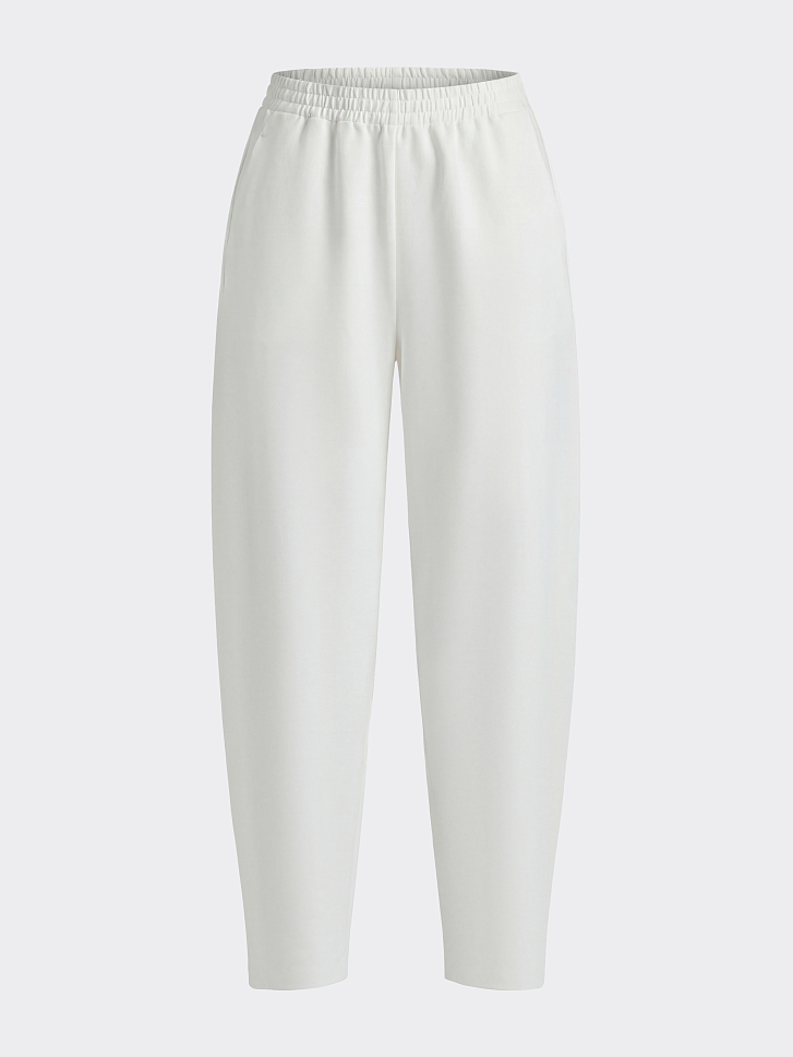 Зауженные брюки станут удобной базой на каждый день: расслабленная посадка и лаконичный дизайн позволяют стилизовать модель со многими вещами в гардеробе. В меру плотный гладкий трикотаж интерлок без начеса мягко прилегает к телу и дарит комфорт, а благодаря содержанию эластичных волокон тянется и не сковывает движения.