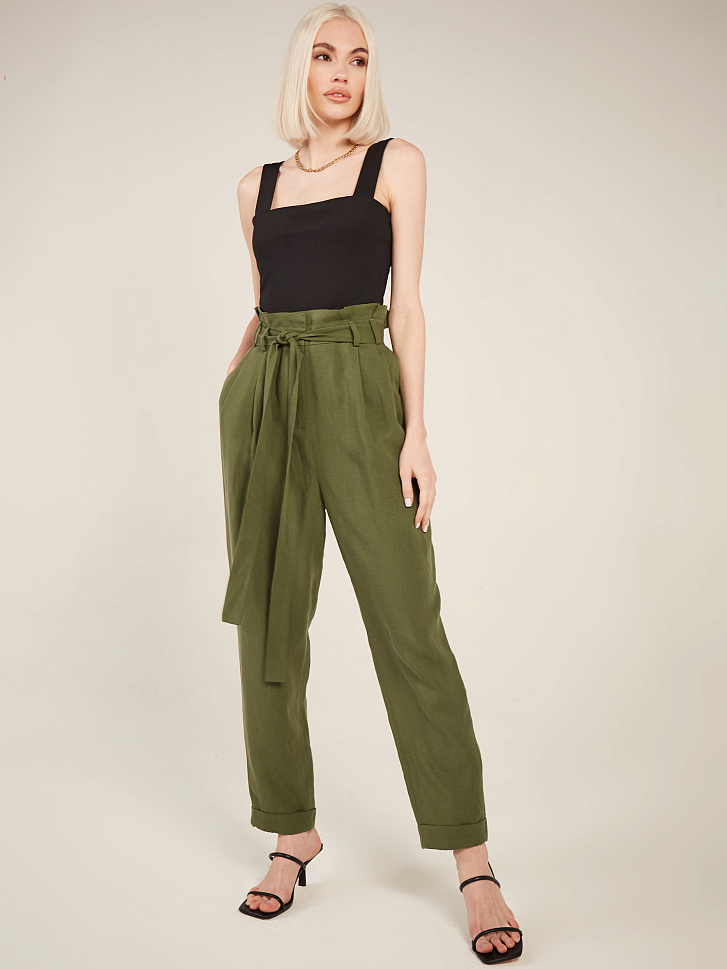 Брюки изо льна с поясом