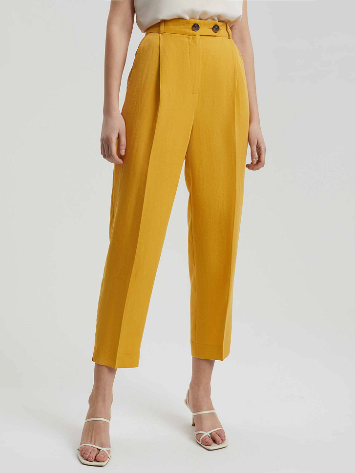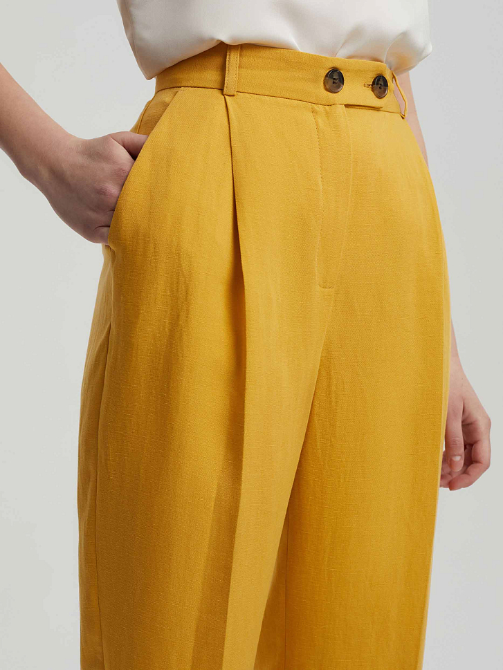 Брюки изо льна с защипами