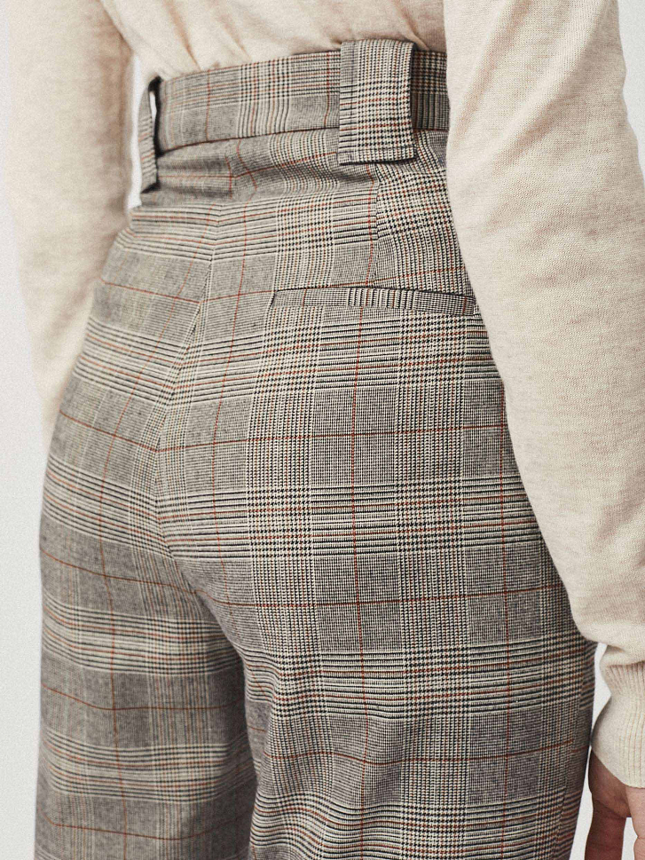 Костюмные брюки прямого кроя, выполненные из мягкой смесовой вискозы. Средняя посадка, втачной пояс, прорезные карманы по бокам, декоративный карман сзади.