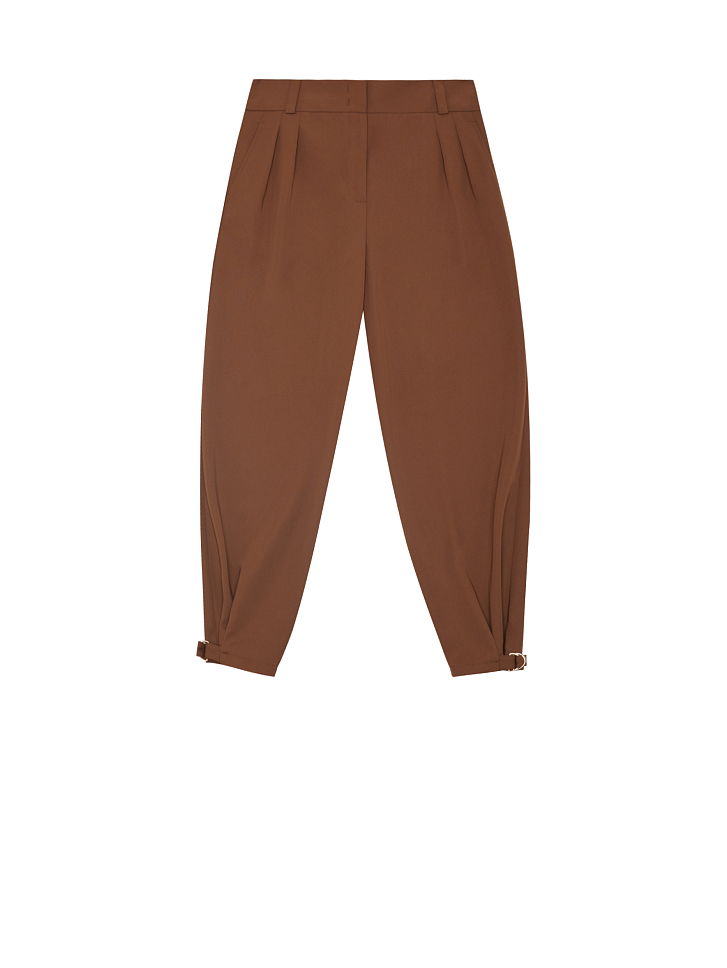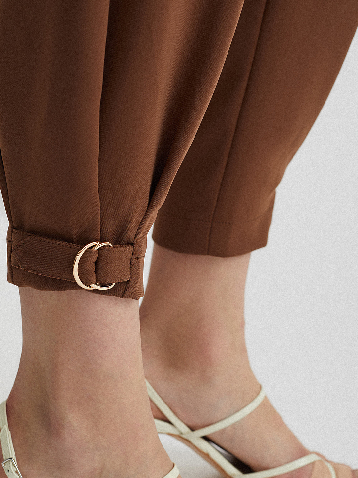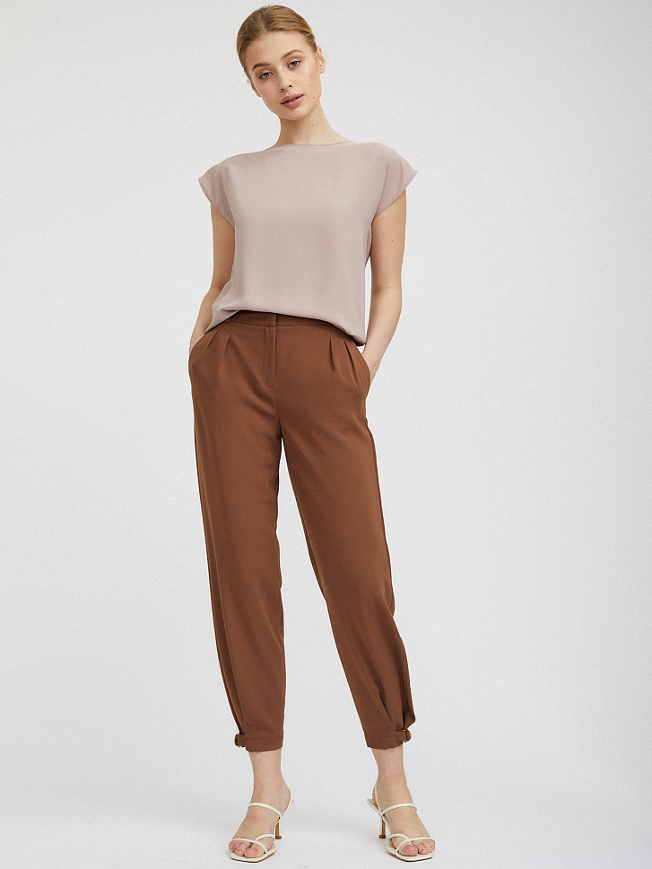 Однотонные объемные брюки. Высокая посадка, защипы, боковые карманы, декоративный карман сзади, паты по низу.