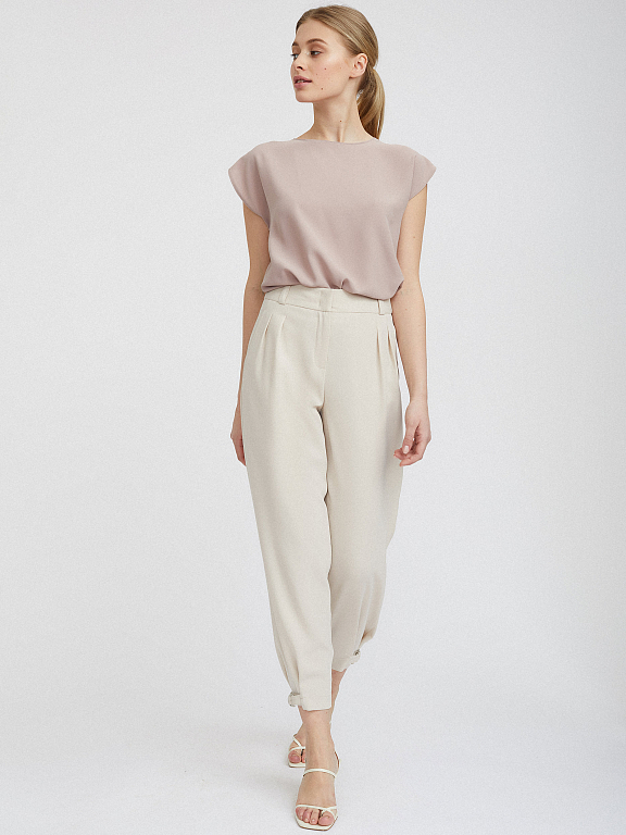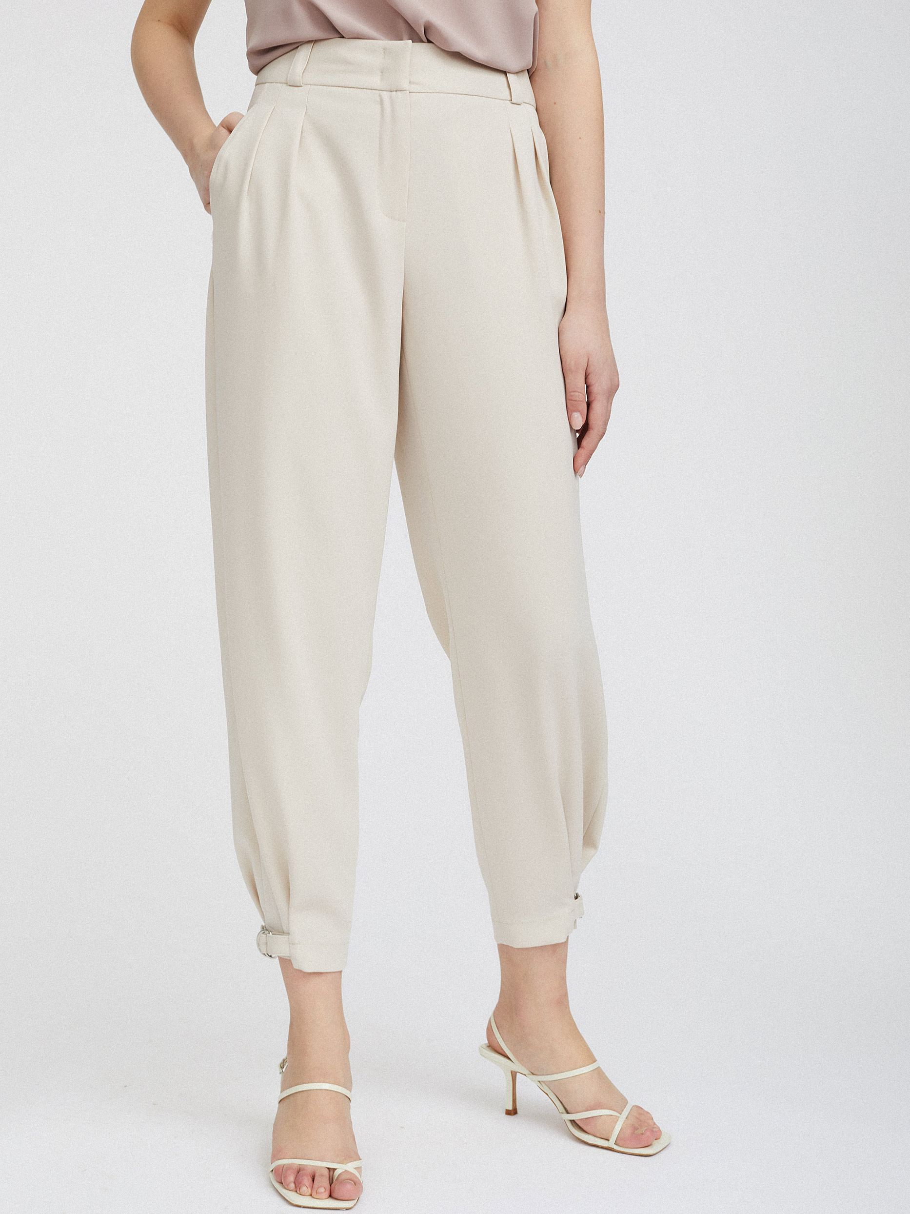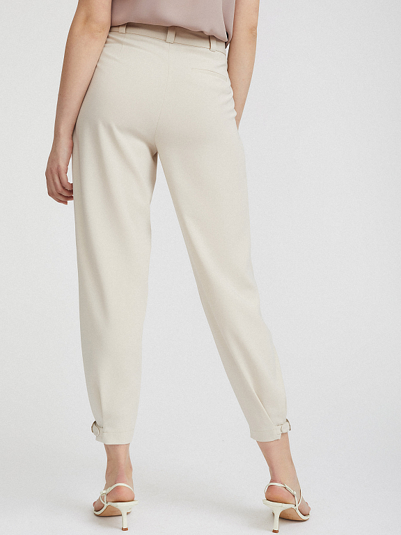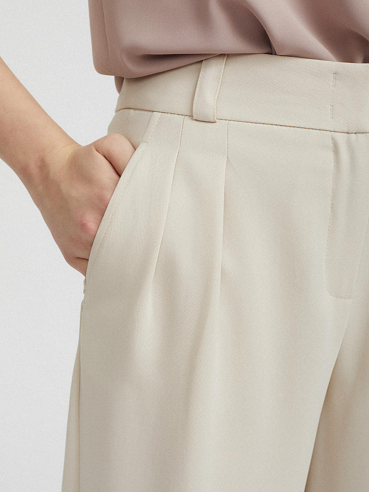 Однотонные объемные брюки. Высокая посадка, защипы, боковые карманы, декоративный карман сзади, паты по низу.