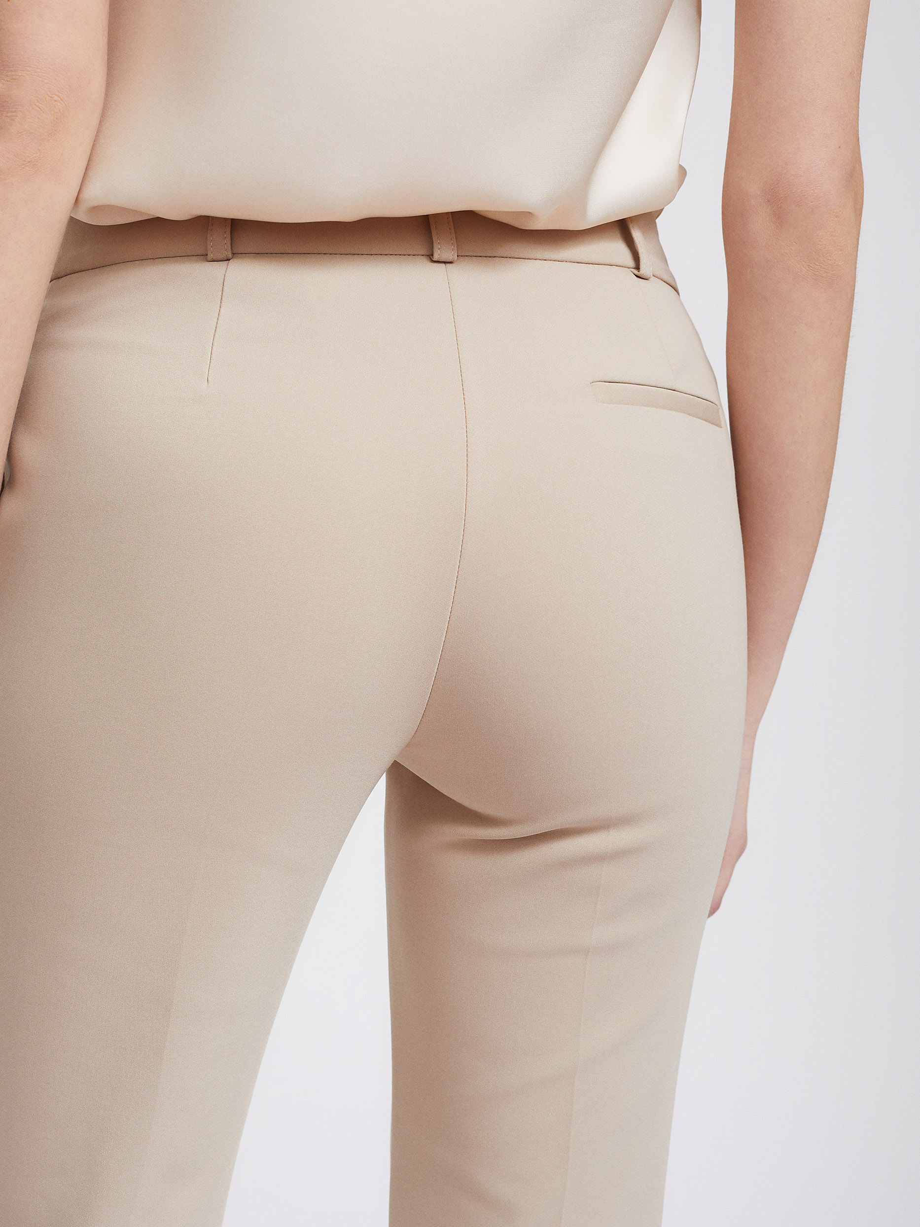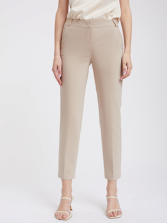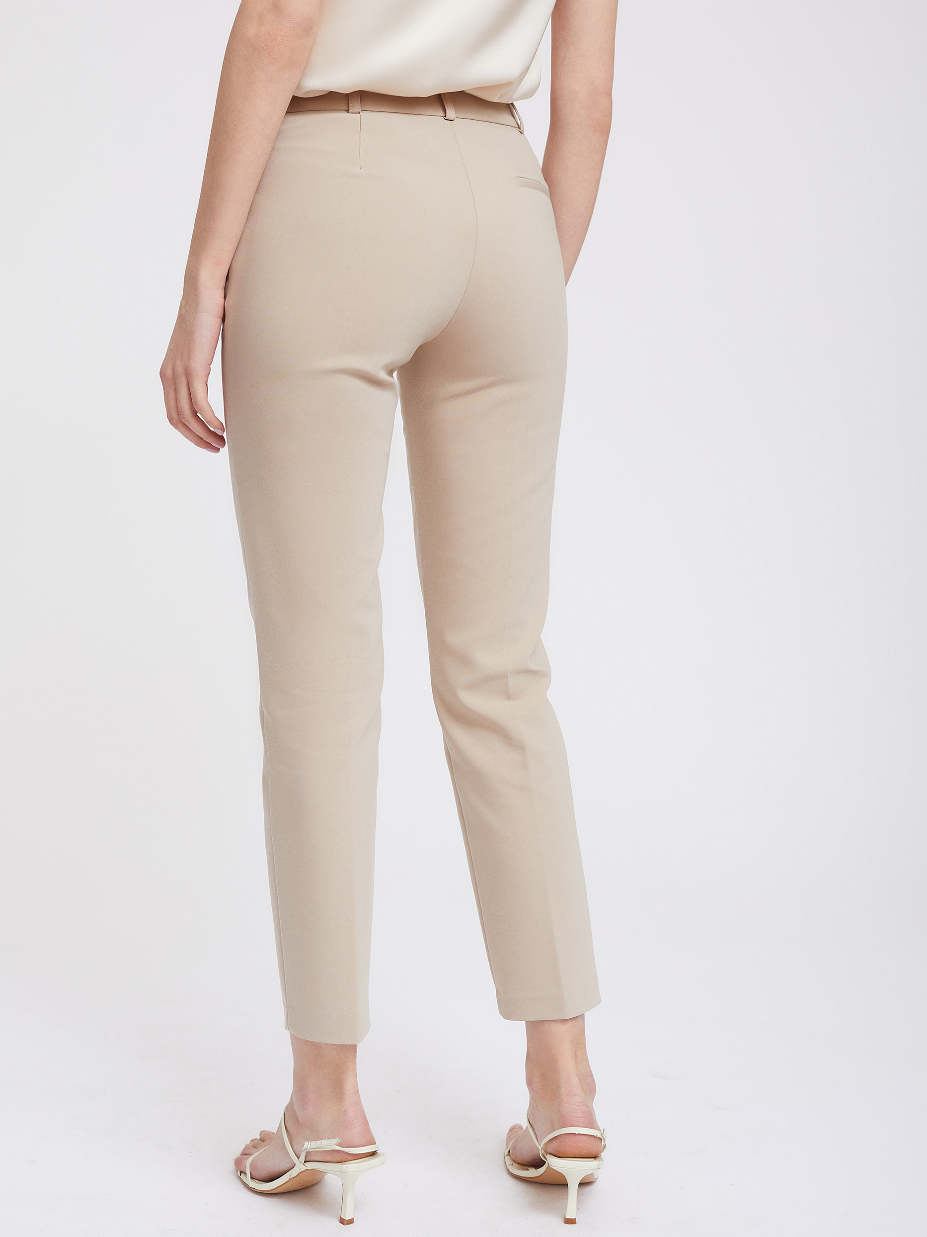 Однотонные укороченные брюки прямого кроя из смесового хлопка. Средняя посадка, боковые карманы, декоративный карман сзади.
