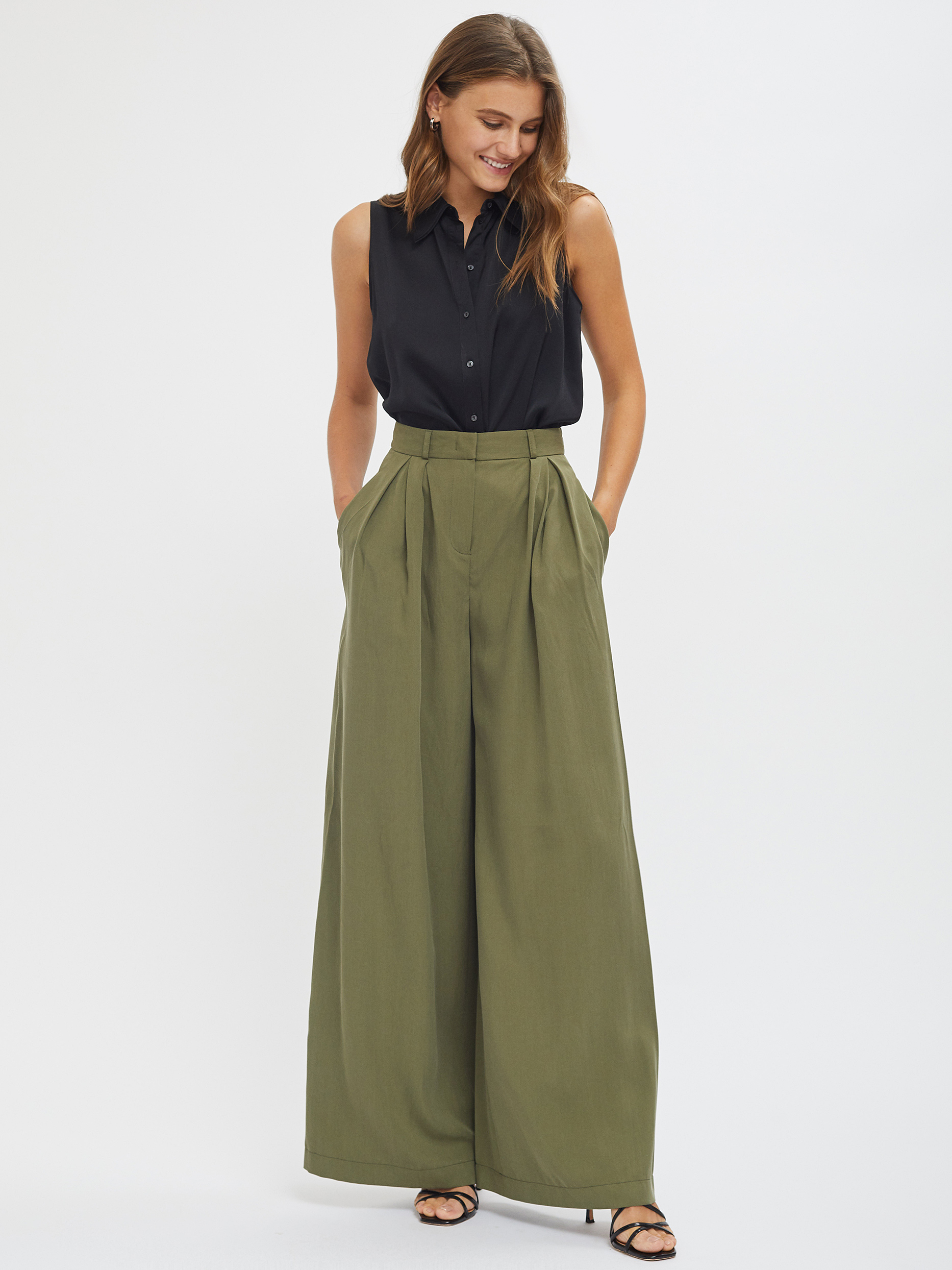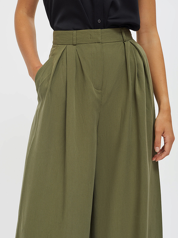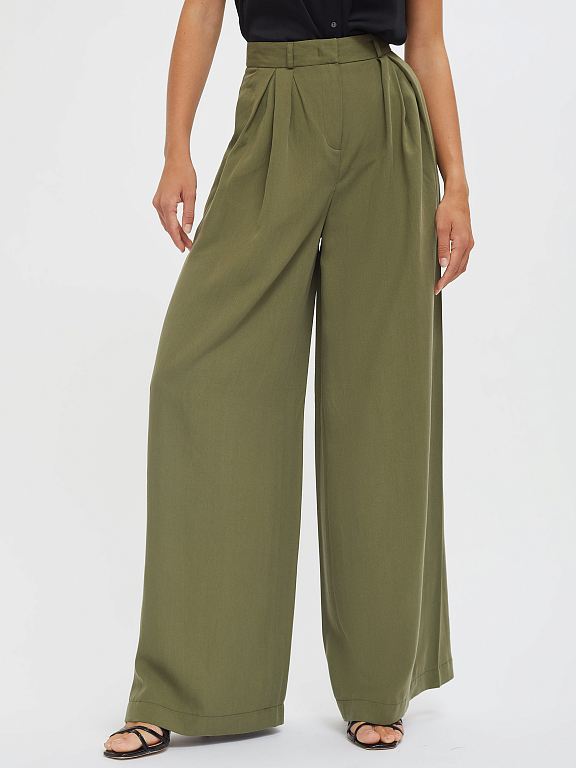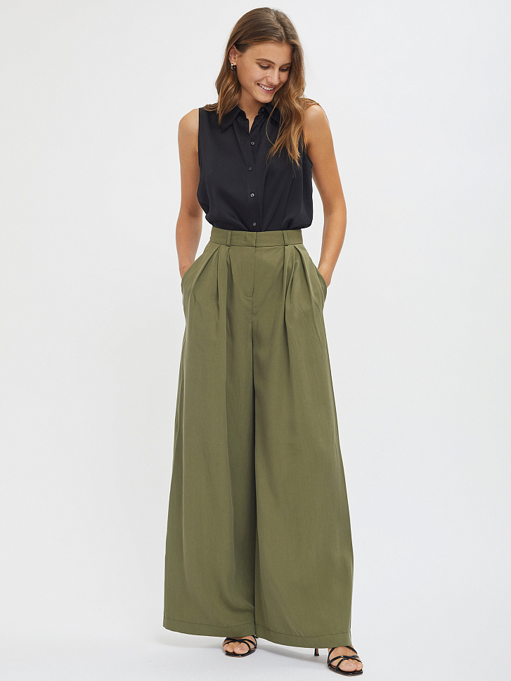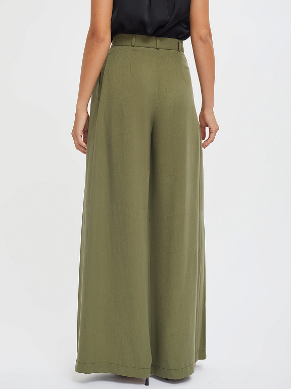 Широкие брюки из лиоцелла. Высокая посадка, втачной пояс со шлевками, защипы, боковые карманы.