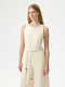 Льняной комбинезон – хит отпускного гардероба. Текстиль средней плотности мягко прилегает к телу, а хлопковая подкладка на брючинах предотвращает просвечивание. Модель расслабленного кроя комфортно сидит в бедрах и не сковывает движения. Плетеный пояс из комплекта можно заменить на классический ремень, чтобы образ заиграл по-новому.