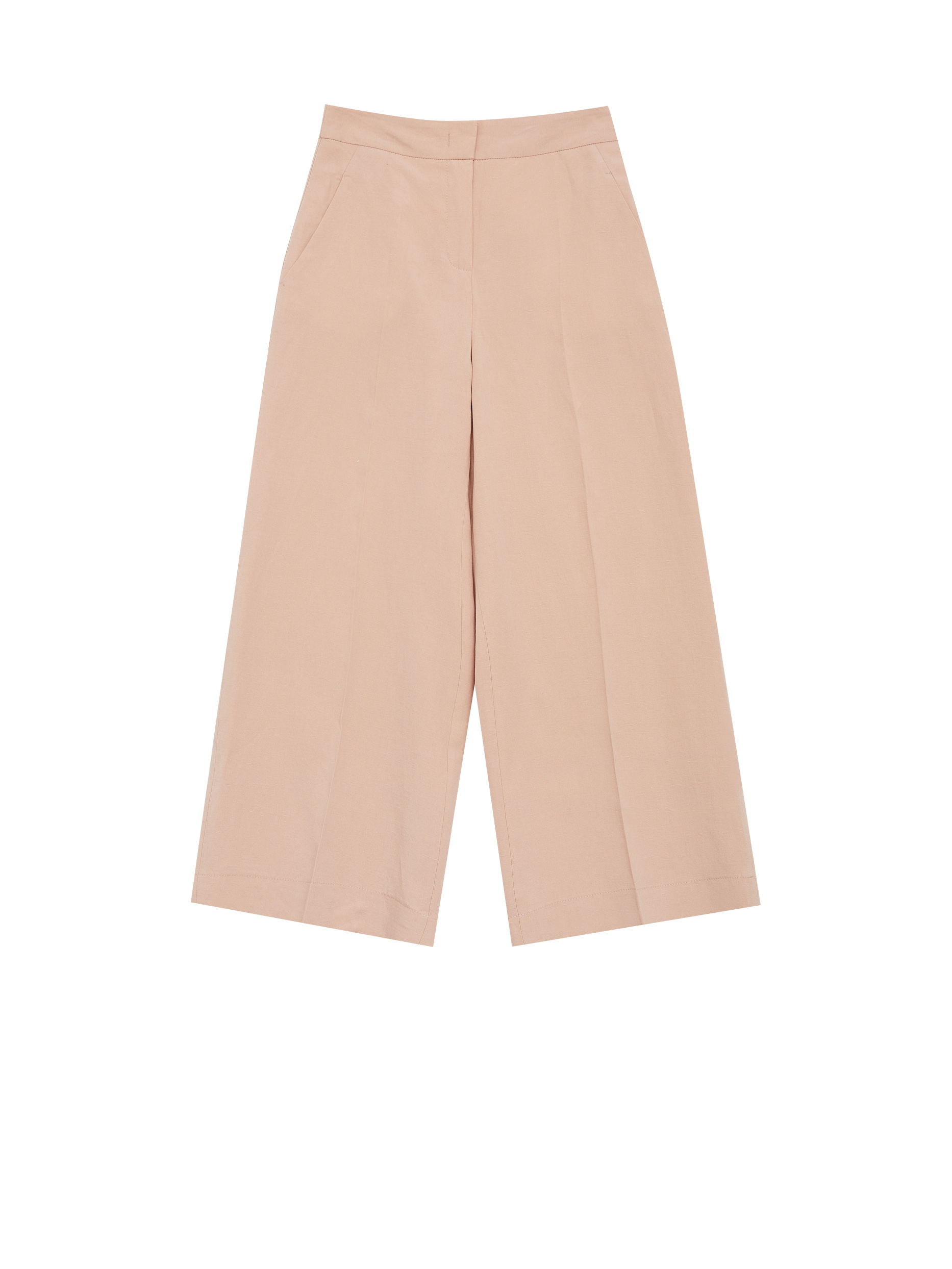 Однотонные кюлоты из смесового льна. Высокая посадка, втачной пояс, боковые карманы.