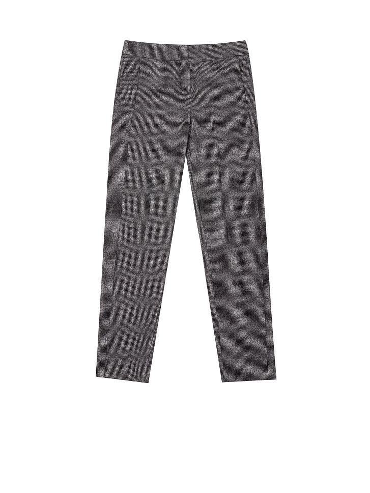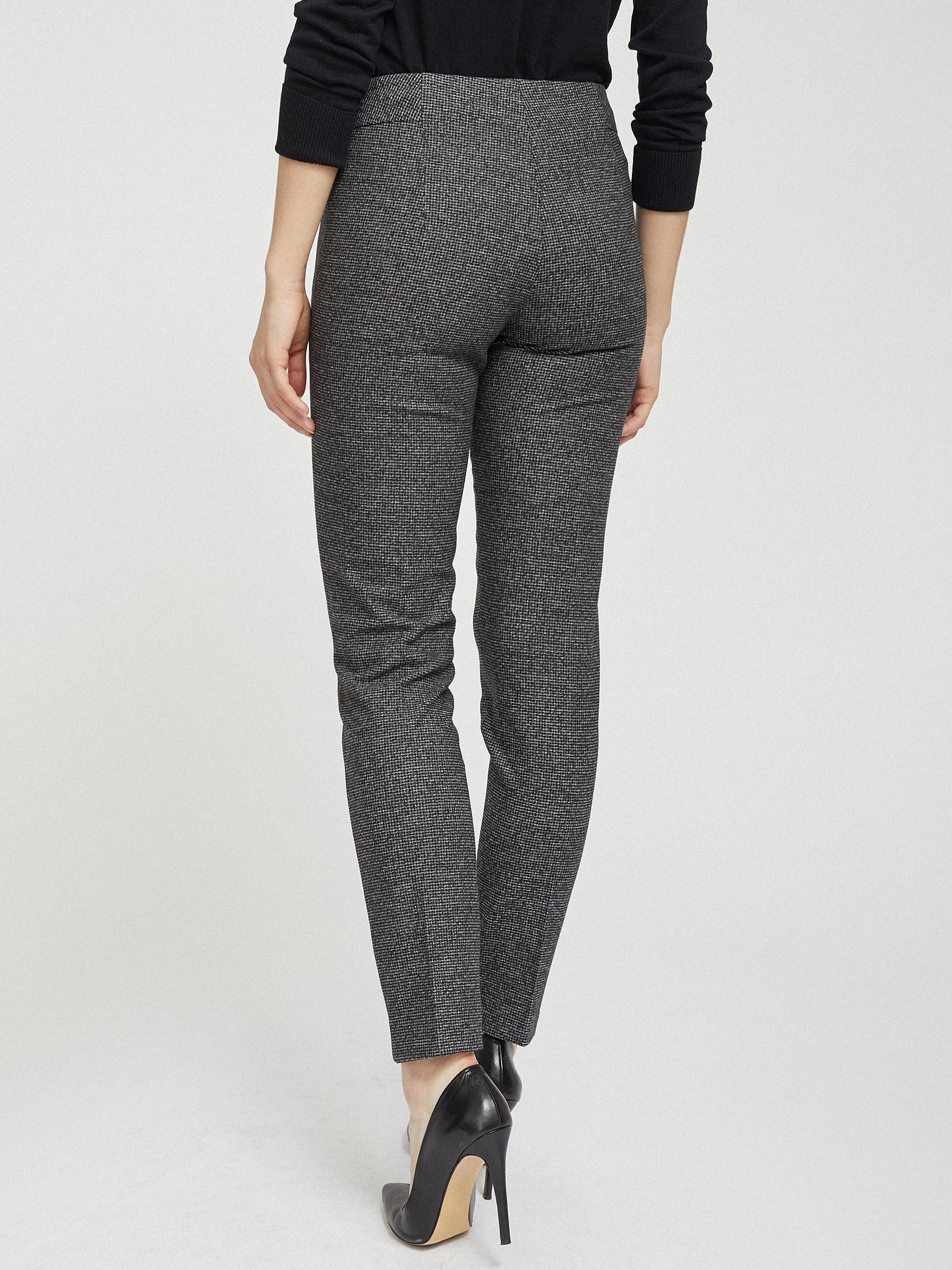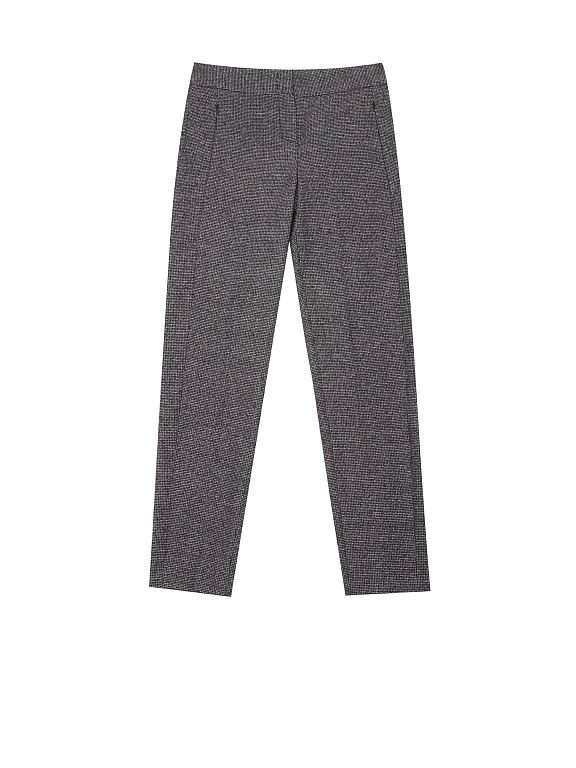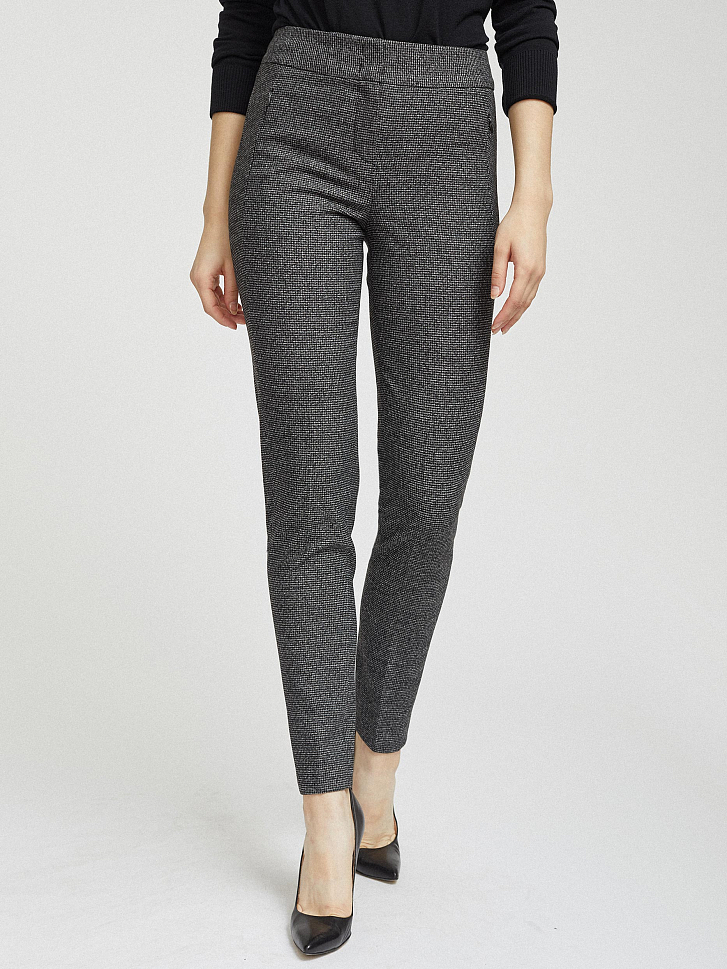 Брюки облегающего кроя, выполненные из утепленной ткани. Узор «гусиная лапка», облегающий крой, средняя посадка, карманы на молнии по бокам.