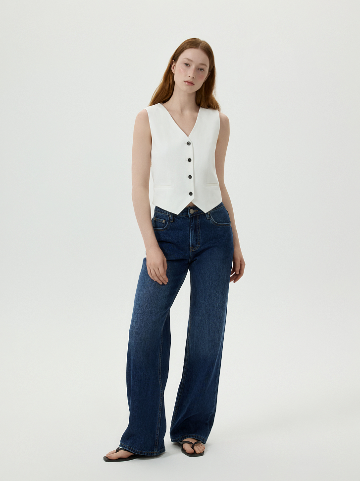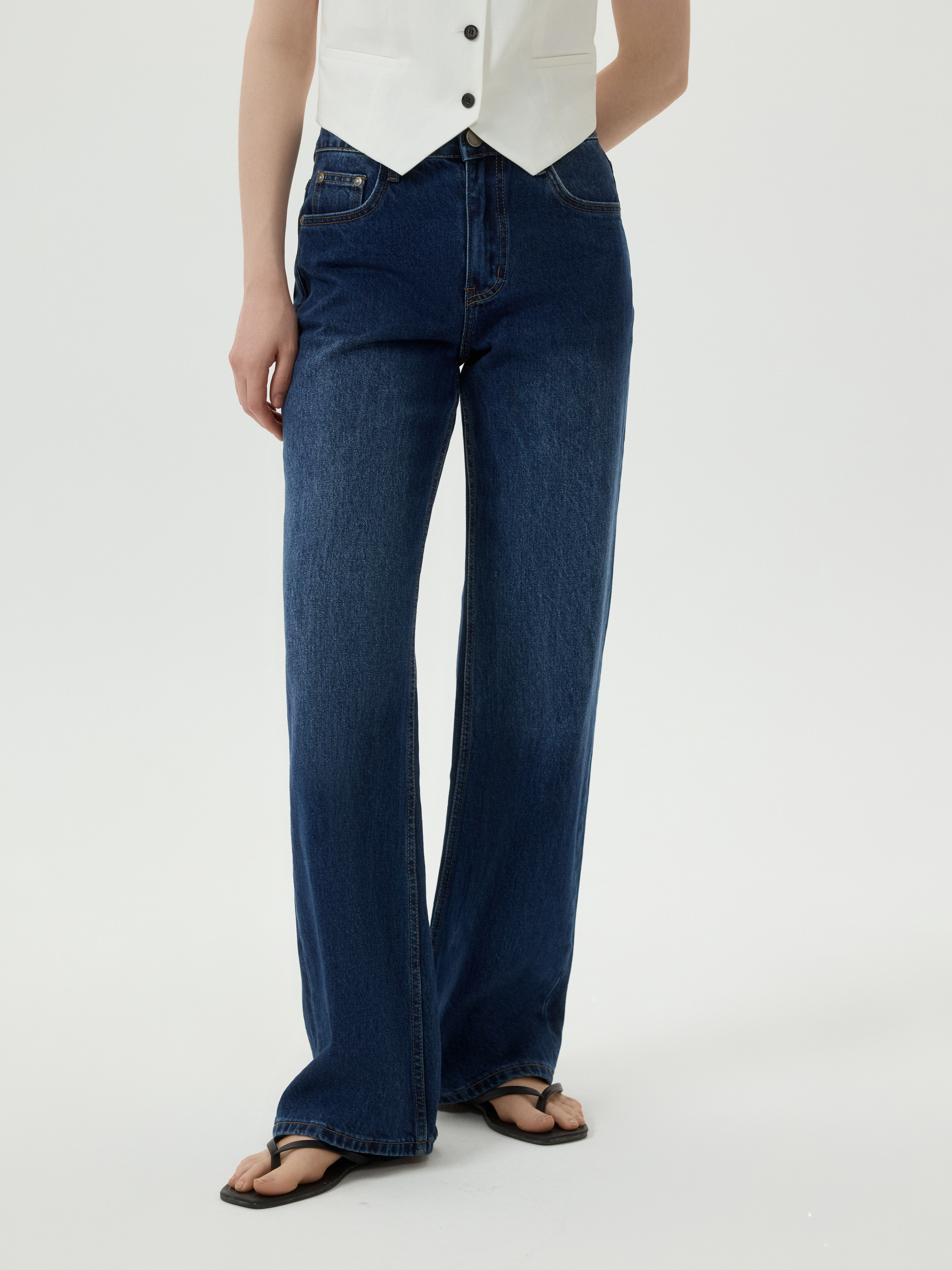 Базовые прямые джинсы созданы для городского ритма и подходят для любого образа. Плотный хлопковый деним не тянется и не мнется, надолго сохраняя внешний вид, а потертости придают изделию винтажный вид.