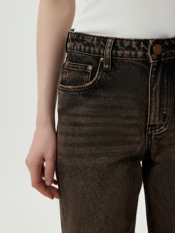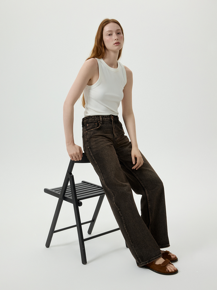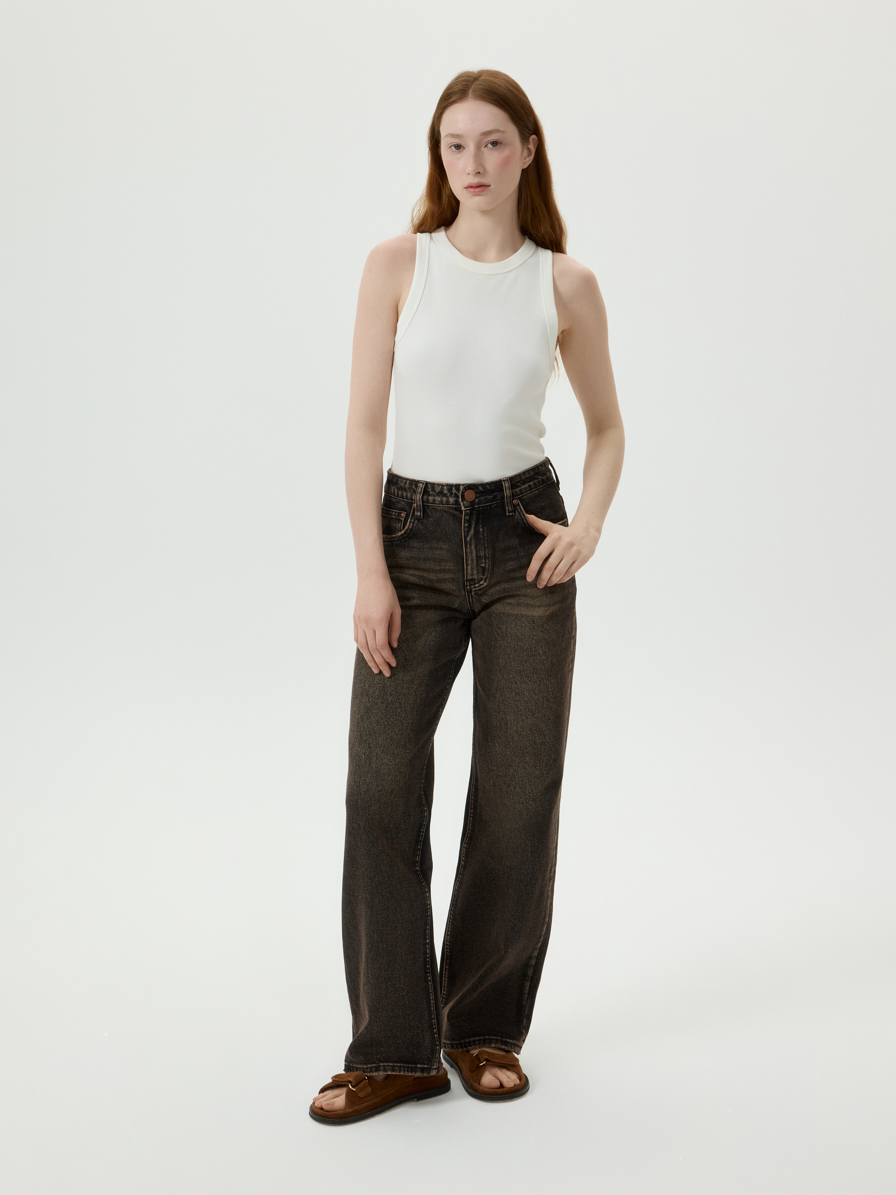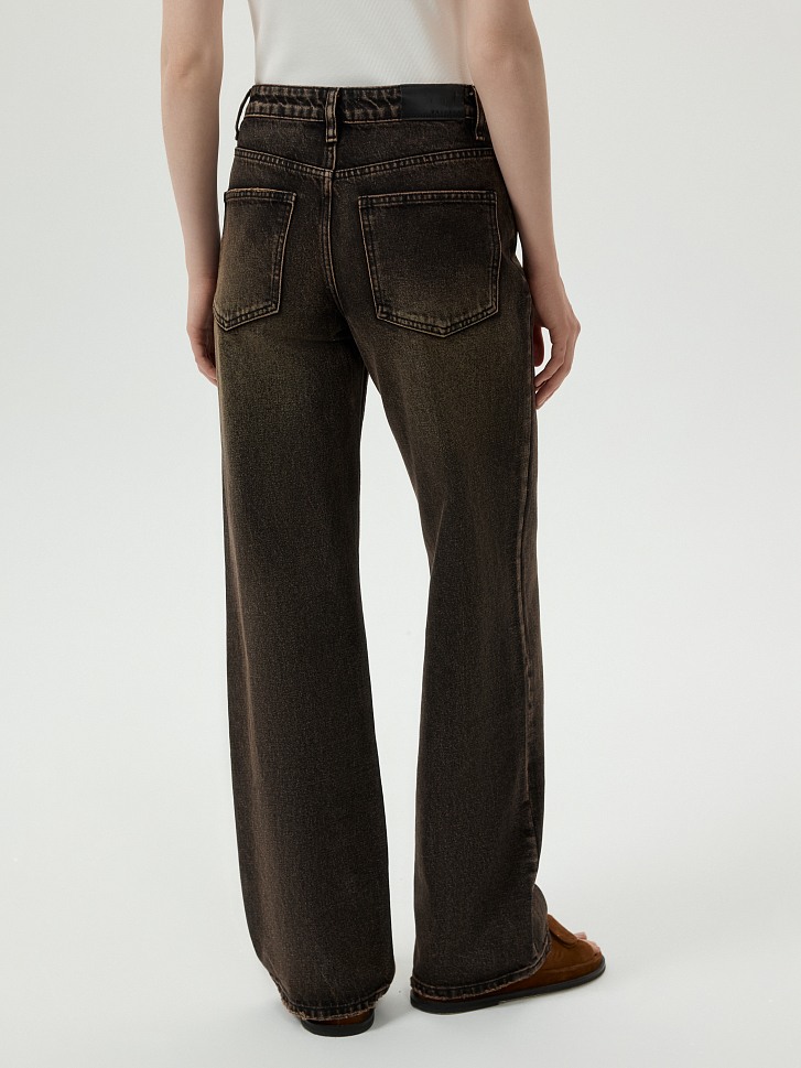 Базовые прямые джинсы созданы для городского ритма и подходят для любого образа. Плотный хлопковый деним не тянется и не мнется, надолго сохраняя внешний вид, а потертости придают изделию винтажный вид.