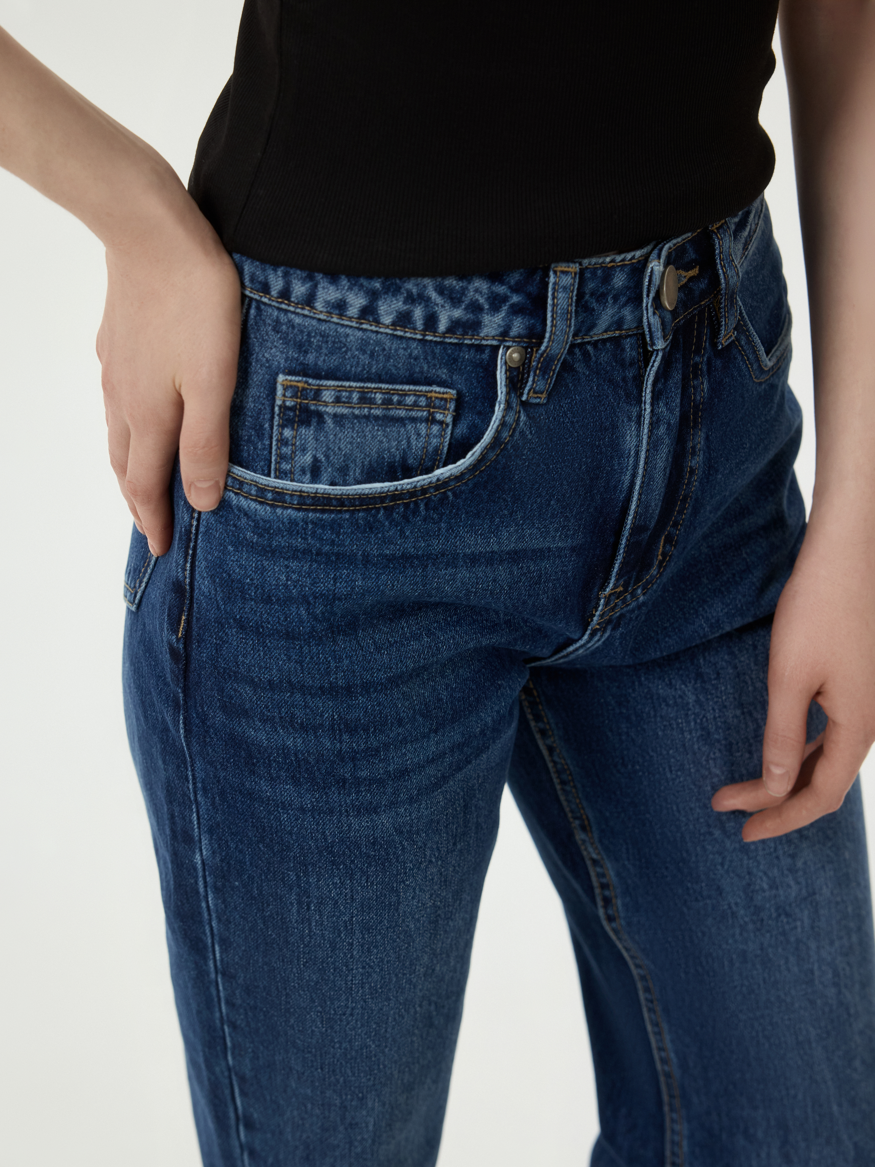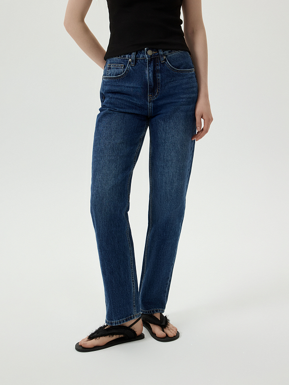 Джинсы прямого кроя со стандартной посадкой – ключ к универсальности, которые легко впишутся в любой гардероб. Плотный деним из хлопка не вытягивается и обладает износоустойчивостью. Легкие потертости придают винтажный эффект.