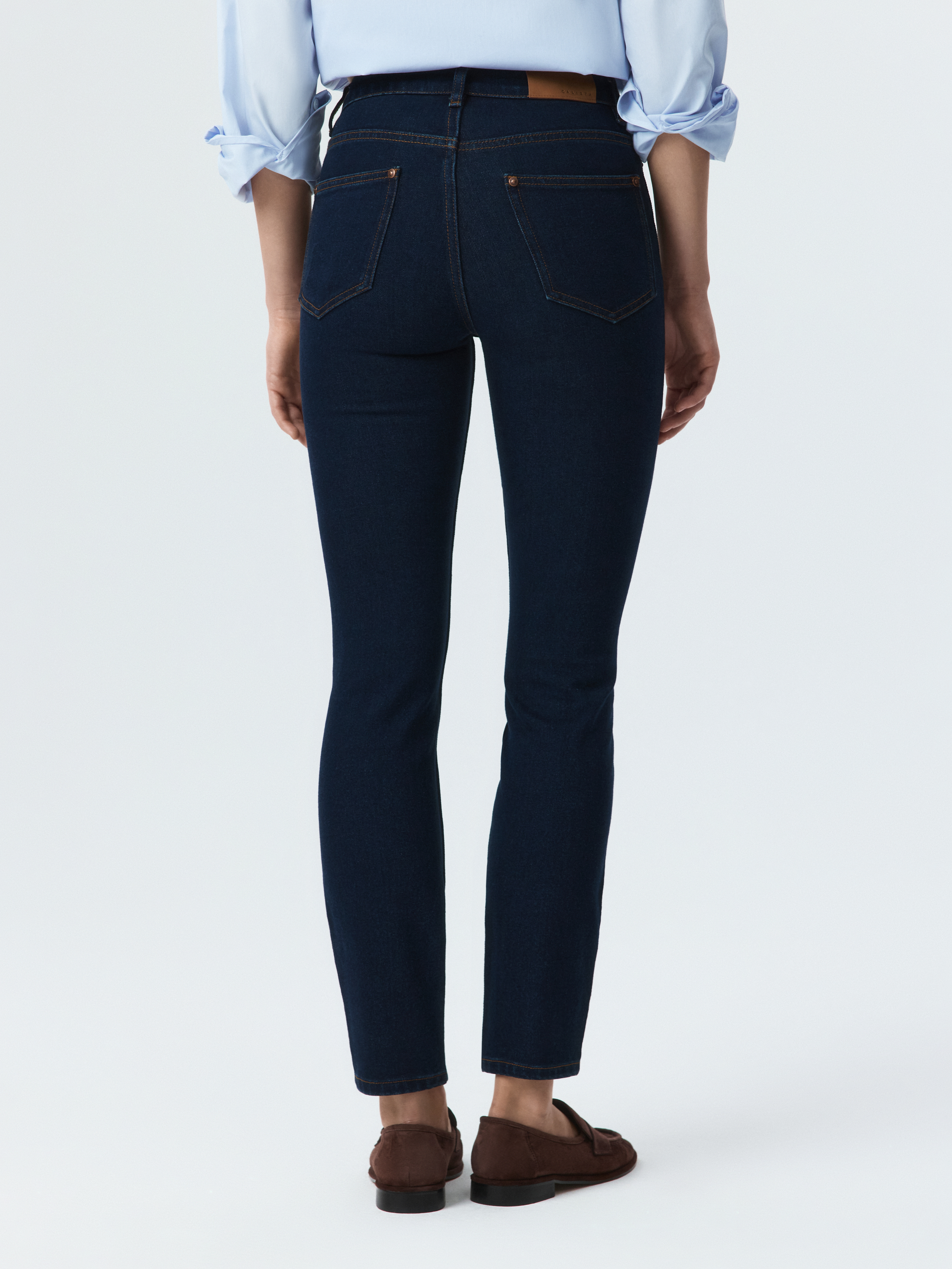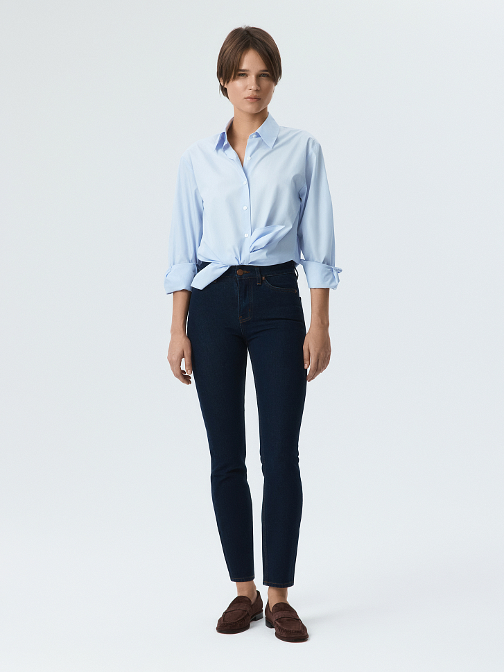 Джинсы – ключевой элемент базового гардероба. Фасон Slim fit подчеркивает фигуру и создает изящный силуэт. Плотный хлопковый деним обладает износоустойчивостью, а благодаря эластичным волокнам слегка тянется и не сковывает движения.