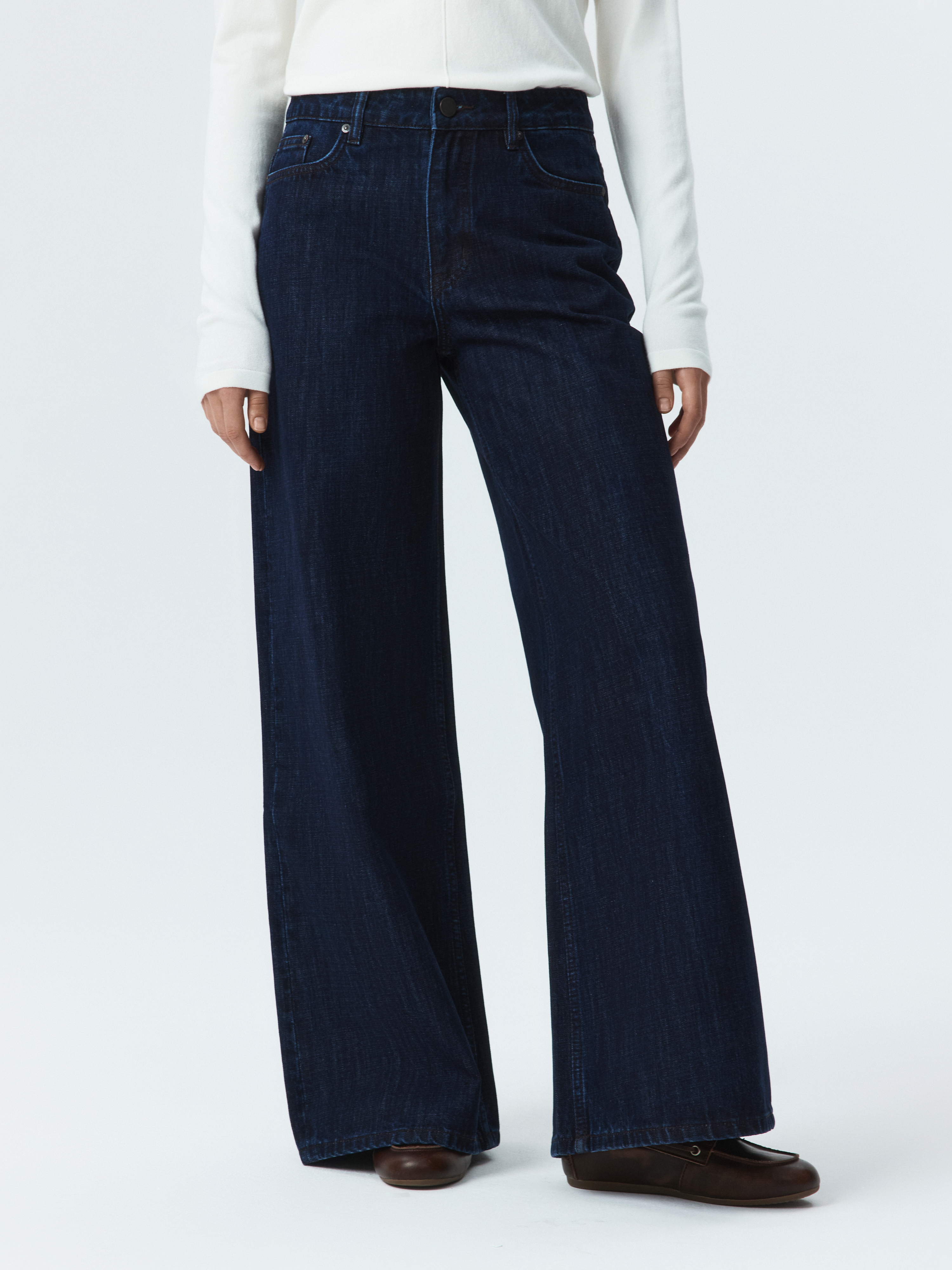 Джинсы Wide leg можно носить с чем угодно, чтобы завершить непринужденный образ. Плотный деним из натурального хлопка прочный и износоустойчивый. Модель широкая от бедра удобно сидит и дарит ощущение комфорта.