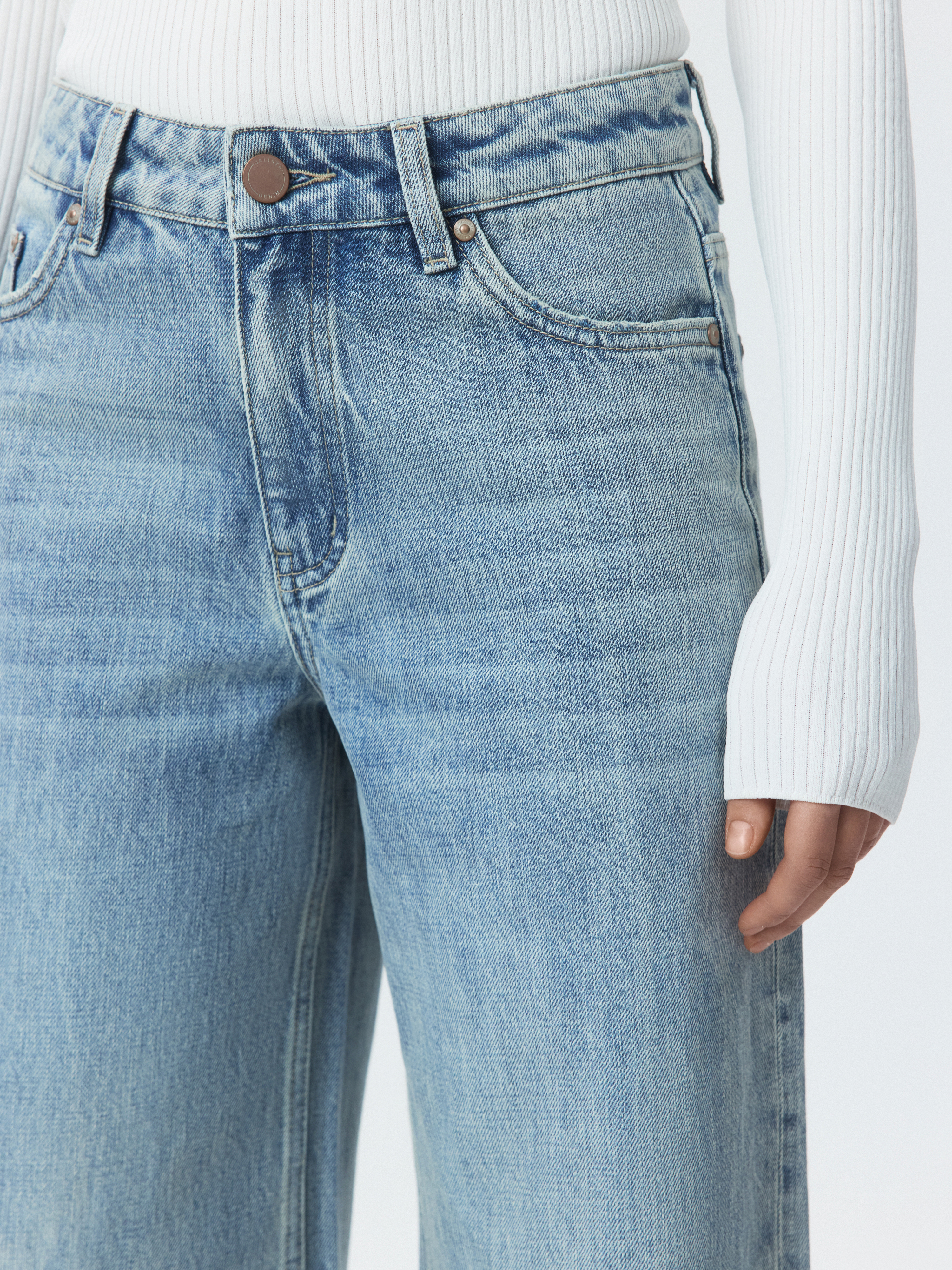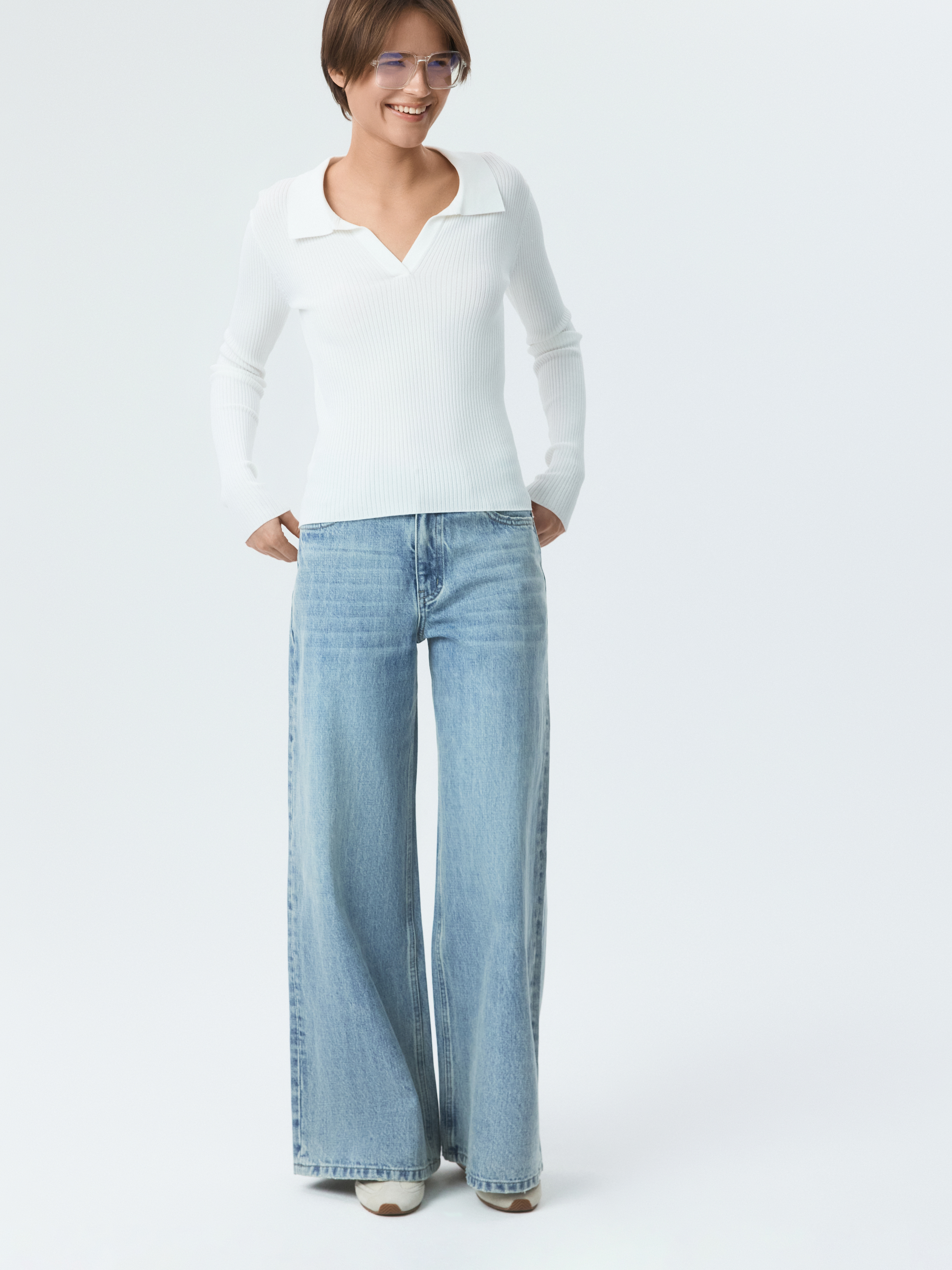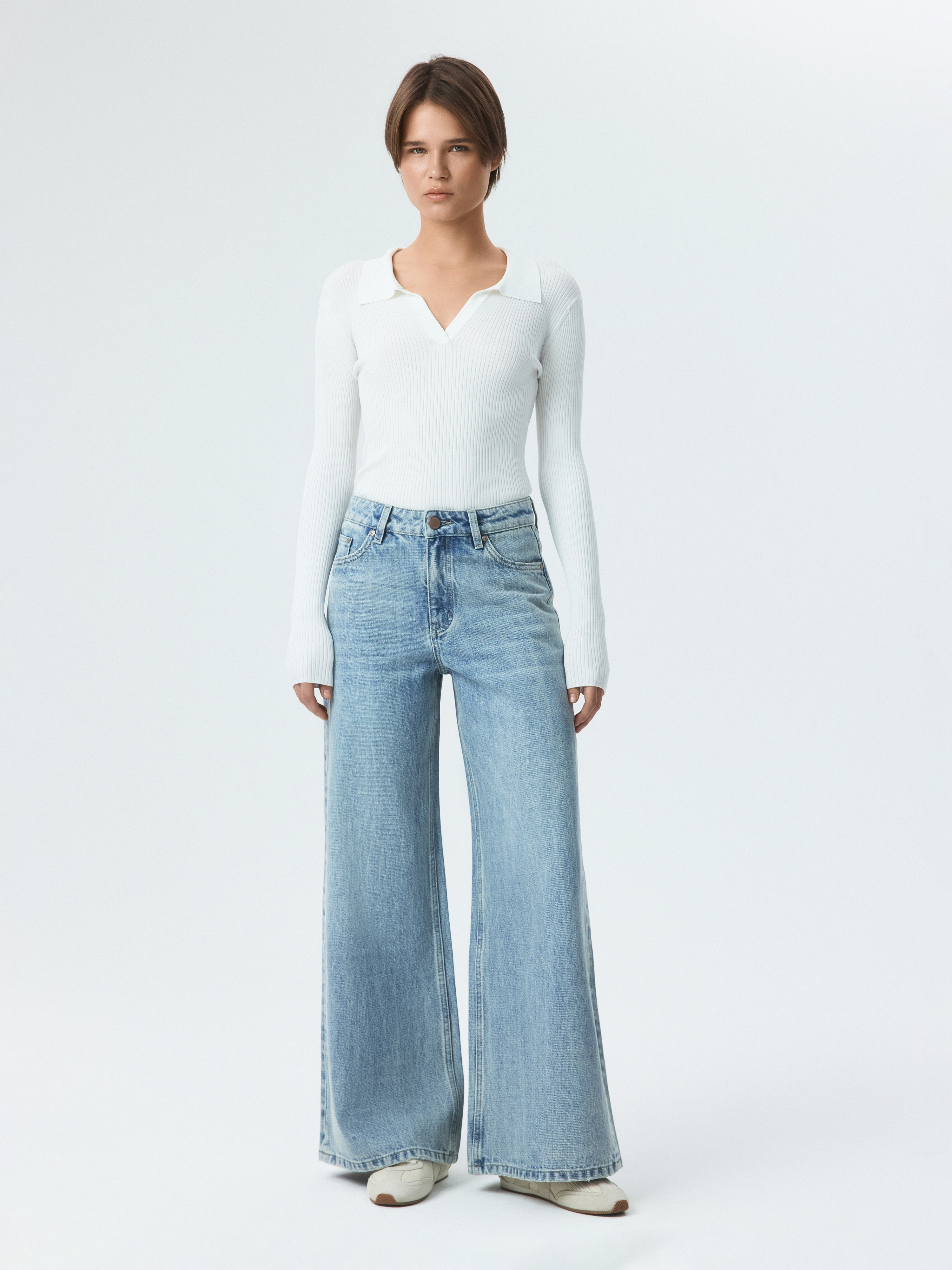 Джинсы Wide leg можно носить с чем угодно, чтобы завершить непринужденный образ. Плотный деним из натурального хлопка прочный и износоустойчивый. Модель широкая от бедра удобно сидит и дарит ощущение комфорта.