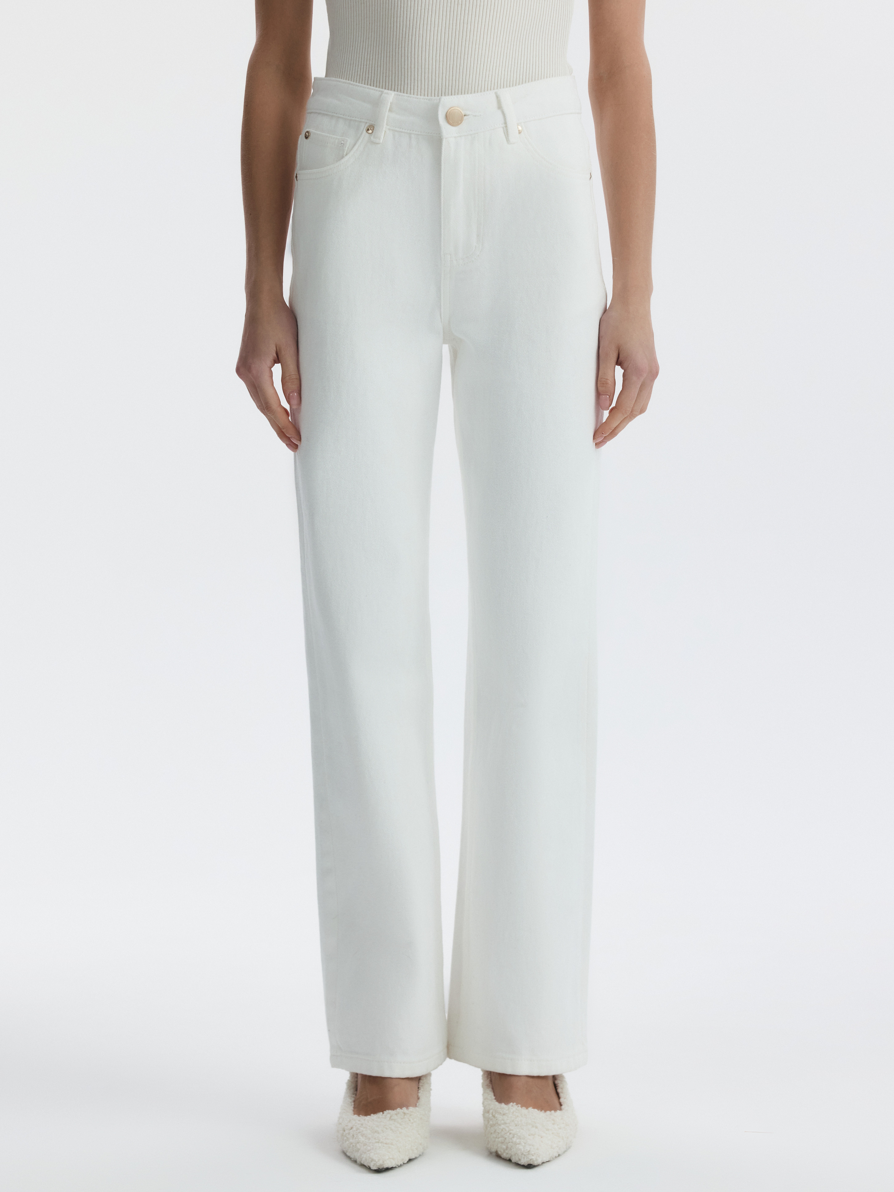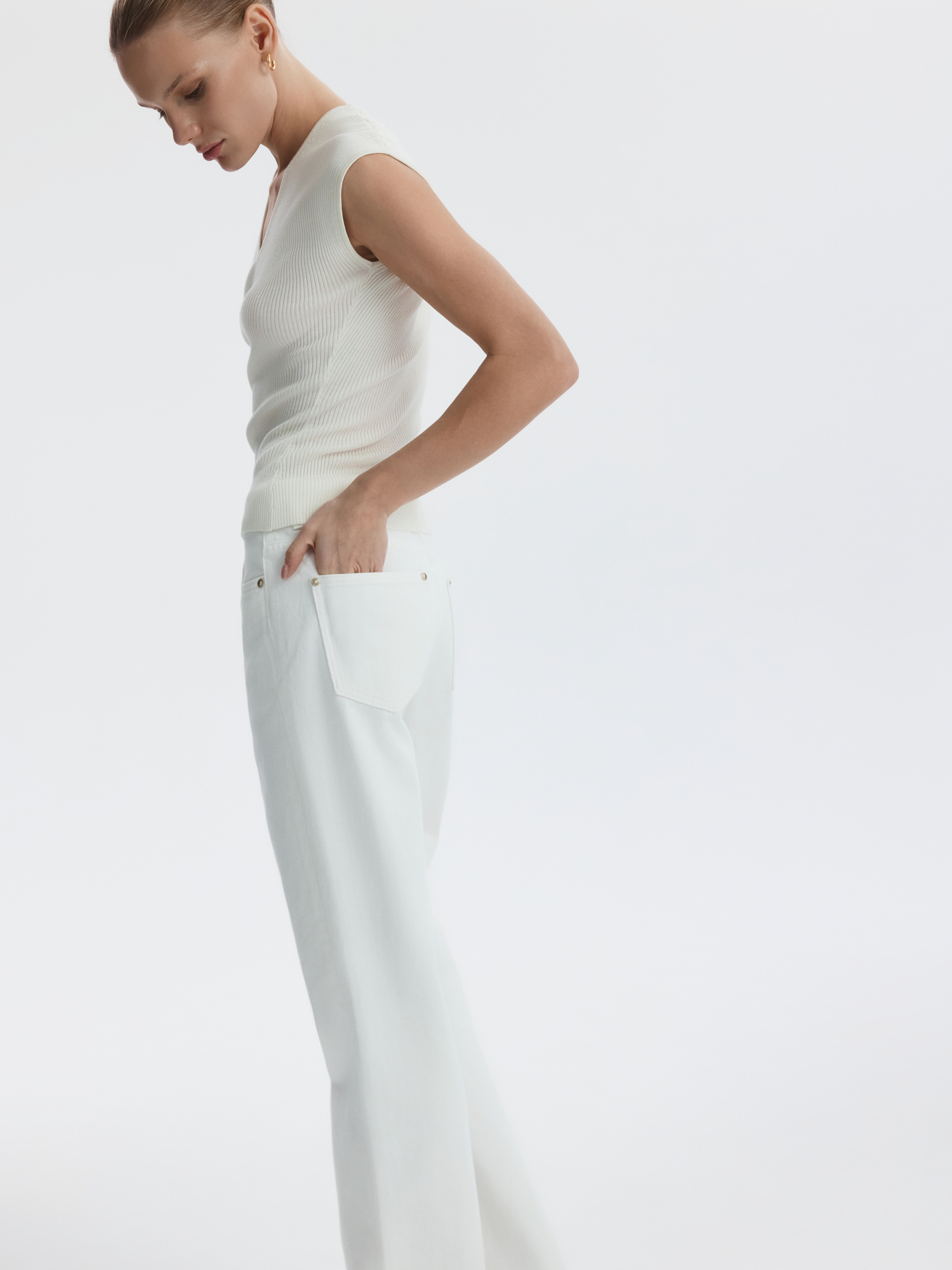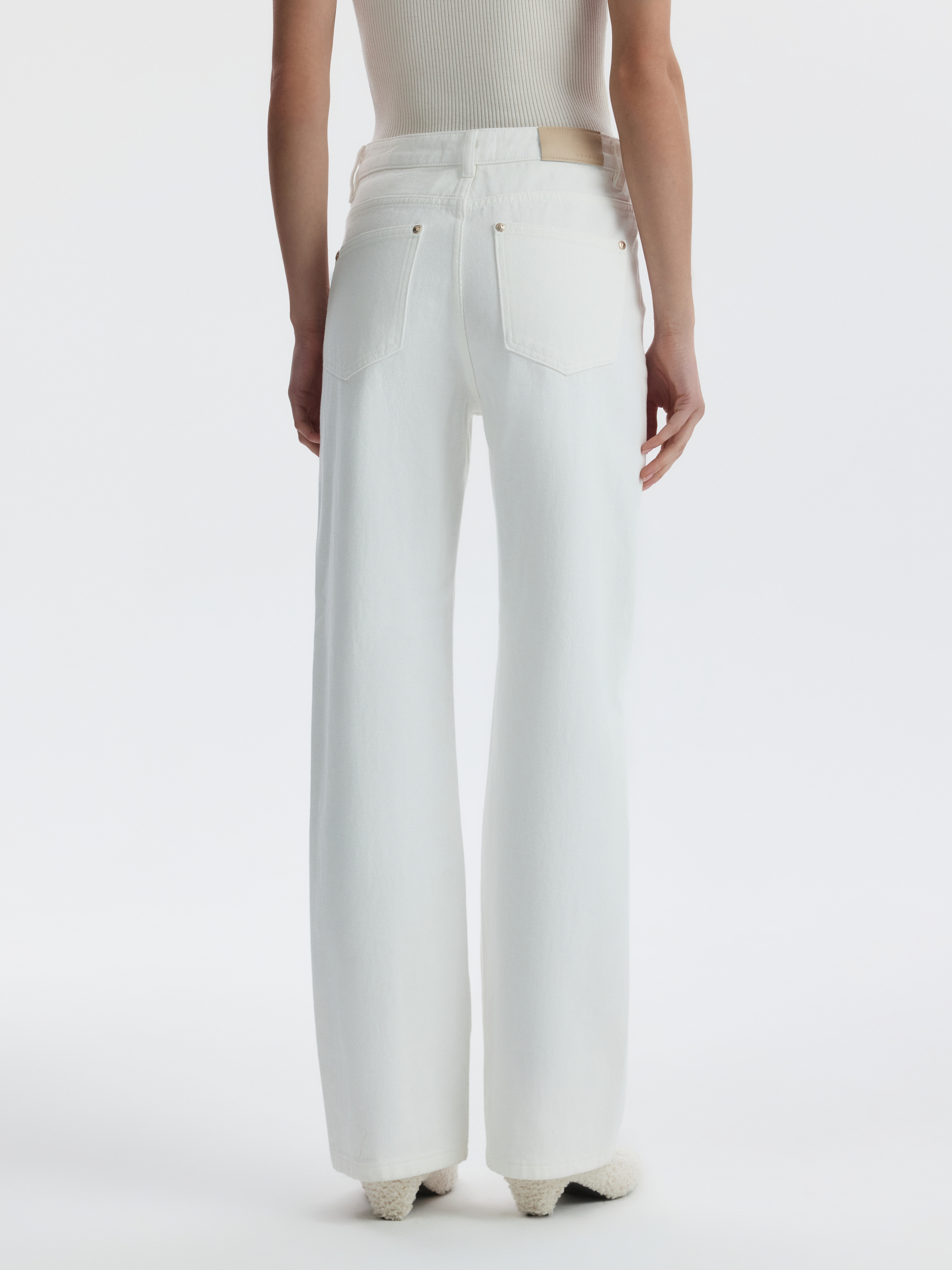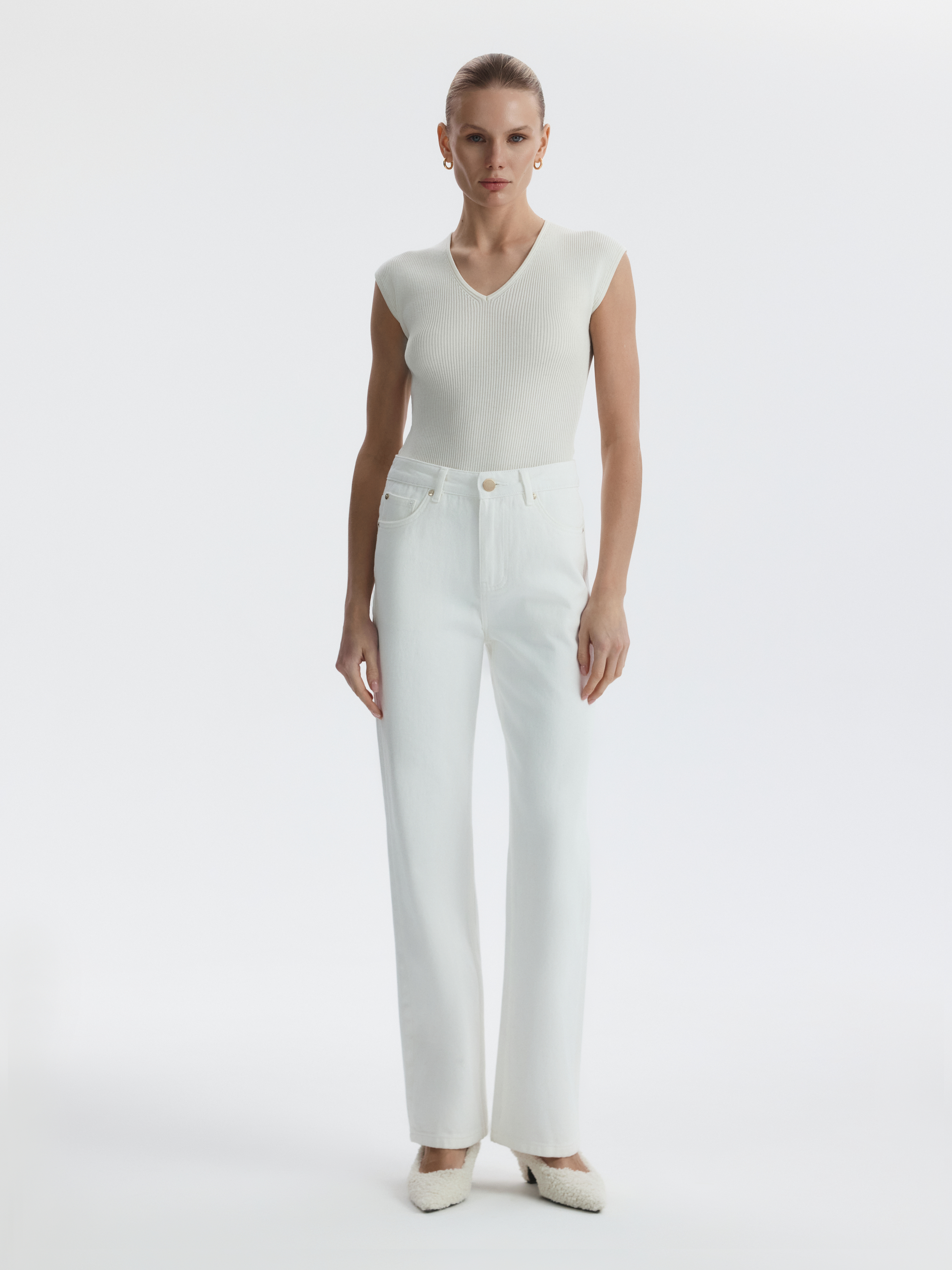 Светлые джинсы освежат образ, сочетаясь с футболками или рубашками. Плотный деним из 100% хлопка не тянется и обладает износоустойчивостью. Модель прямого кроя комфортно сидит по фигуре и не сковывает движения.
