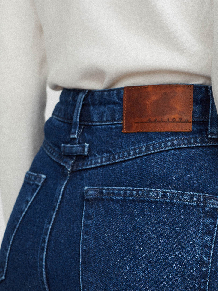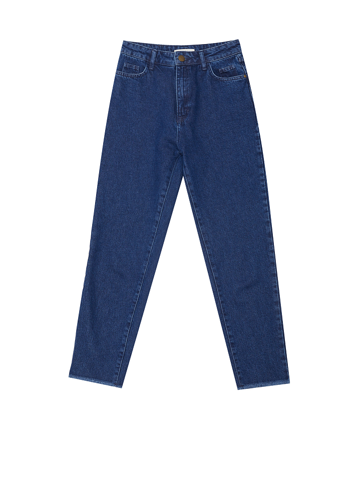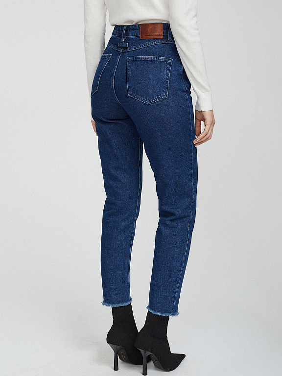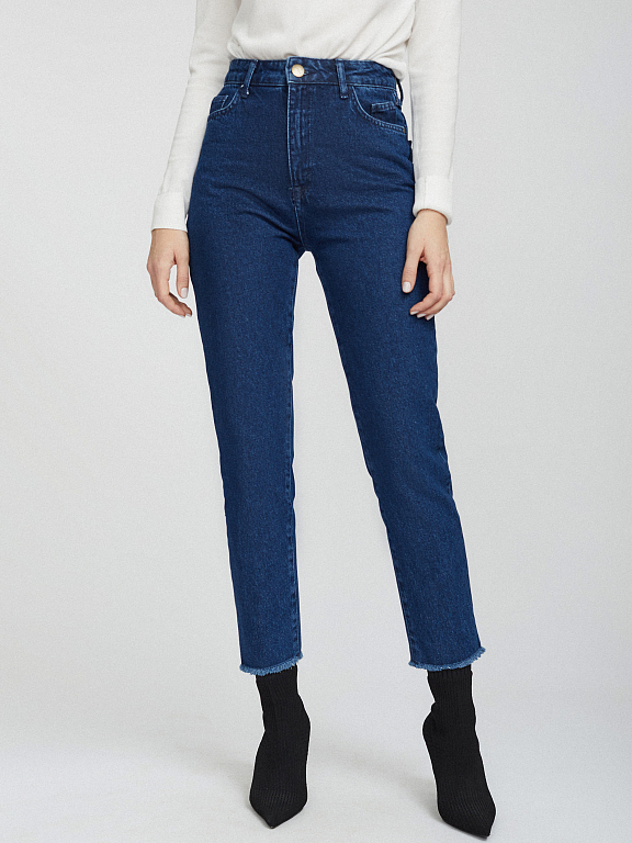Укороченные джинсы из плотного хлопка. Высокая посадка, прорезные карманы, накладные карманы сзади, бахрома по нижнему краю.