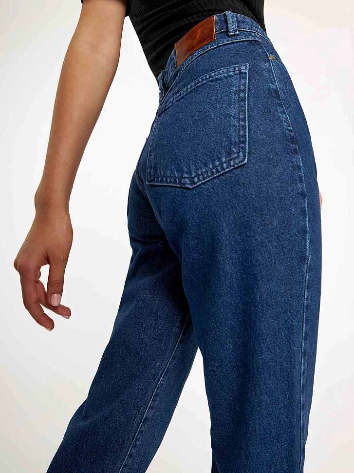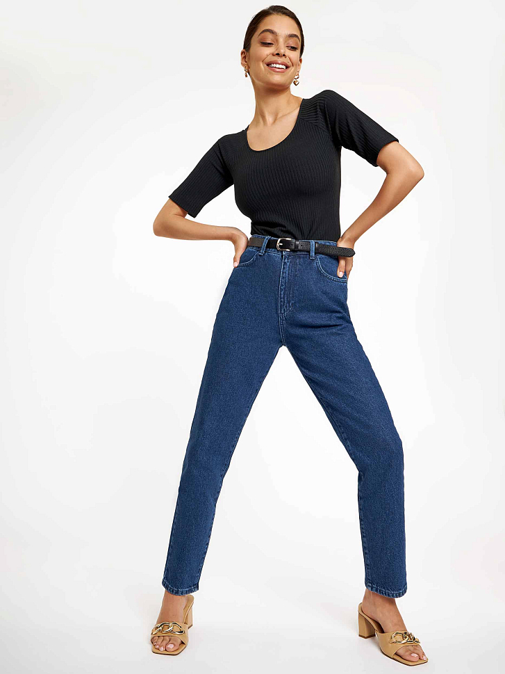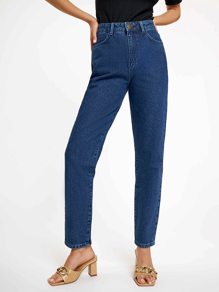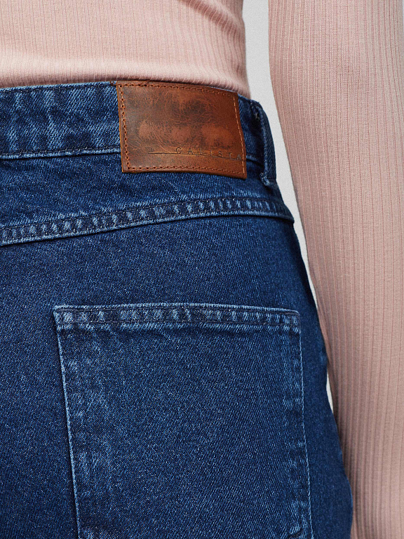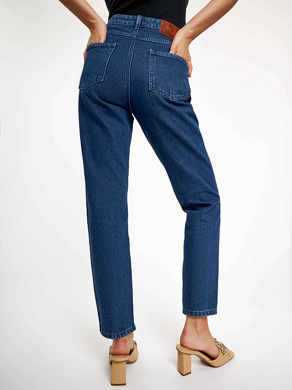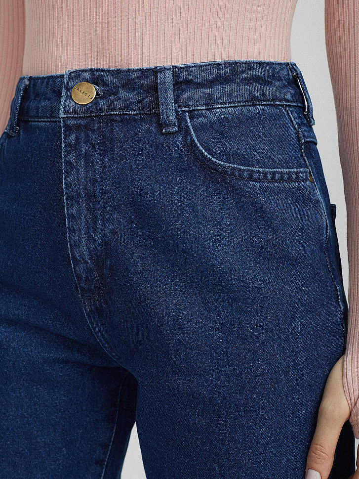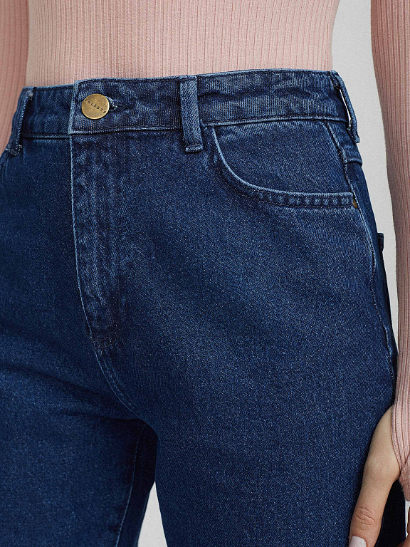 Укороченные джинсы из плотного хлопка. Прямой крой, высокая посадка, прорезные карманы по бокам, накладные карманы сзади.